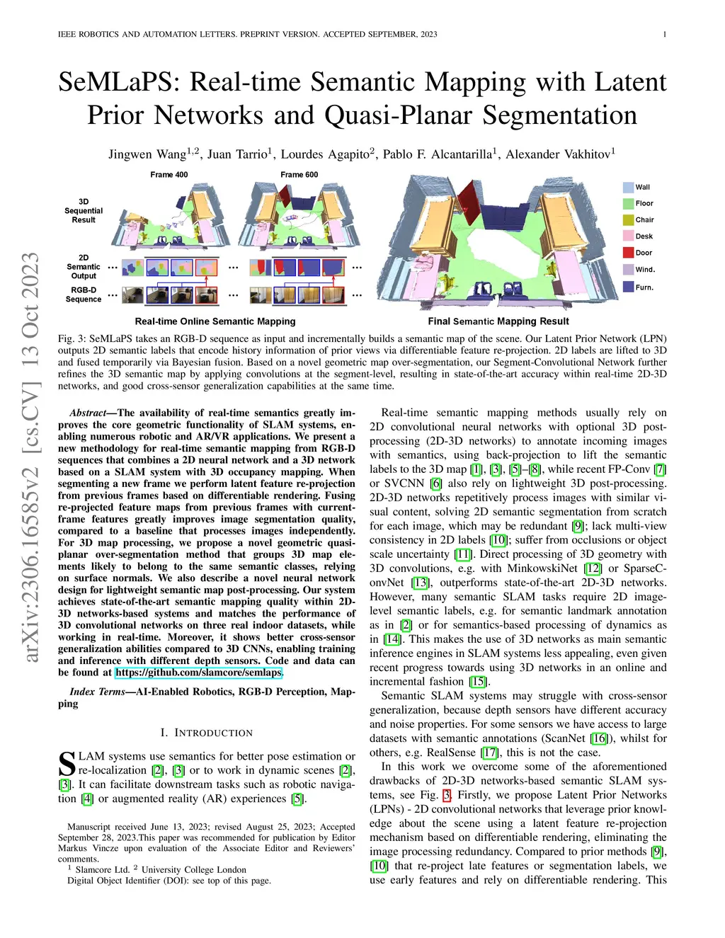 SeMLaPS: Real-time Semantic Mapping with Latent Prior Networks and