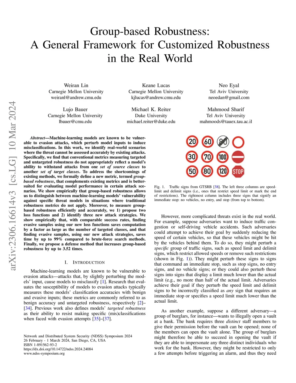 Machine-learning models are known to be vulnerable to evasion attacks that perturb model inputs to induce misclassifications. In this work, we identify real-world scenarios where the true threat cannot be assessed accurately by existing attacks. Specifically, we find that conventional metrics measuring targeted and untargeted robustness do not appropriately reflect a model's ability to withstand attacks from one set of source classes to another set of target classes. To address the shortcomings of existing methods, we formally define a new metric, termed group-based robustness, that complements existing metrics and is better-suited for evaluating model performance in certain attack scenarios. We show empirically that group-based robustness allows us to distinguish between models' vulnerability against specific threat models in situations where traditional robustness metrics do not apply. Moreover, to measure group-based robustness efficiently and accurately, we 1) propose two loss functions and 2) identify three new attack strategies. We show empirically that with comparable success rates, finding evasive samples using our new loss functions saves computation by a factor as large as the number of targeted classes, and finding evasive samples using our new attack strategies saves time by up to 99\% compared to brute-force search methods. Finally, we propose a defense method that increases group-based robustness by up to 3.52.