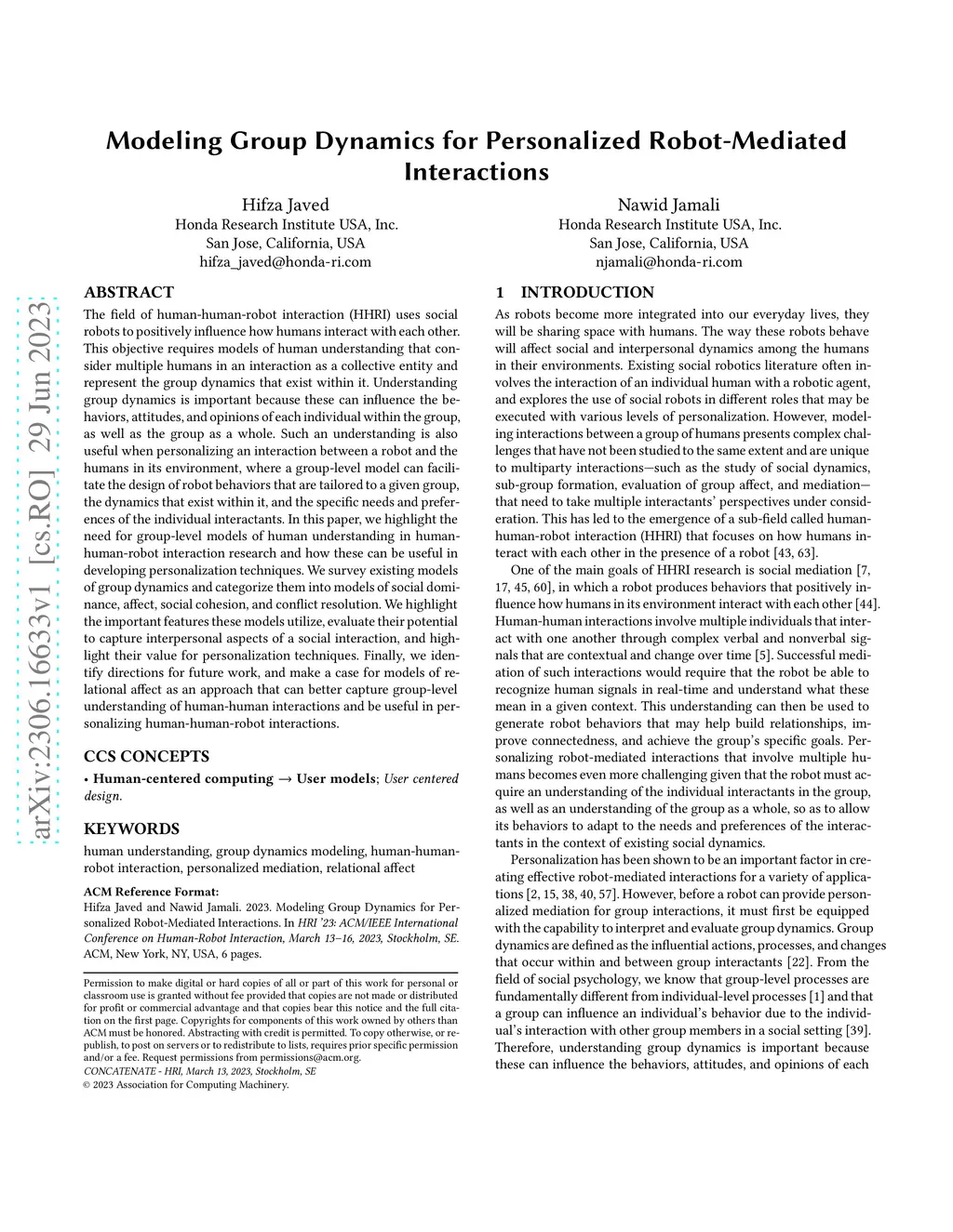 Modeling Group Dynamics for Personalized Robot-Mediated Interactions