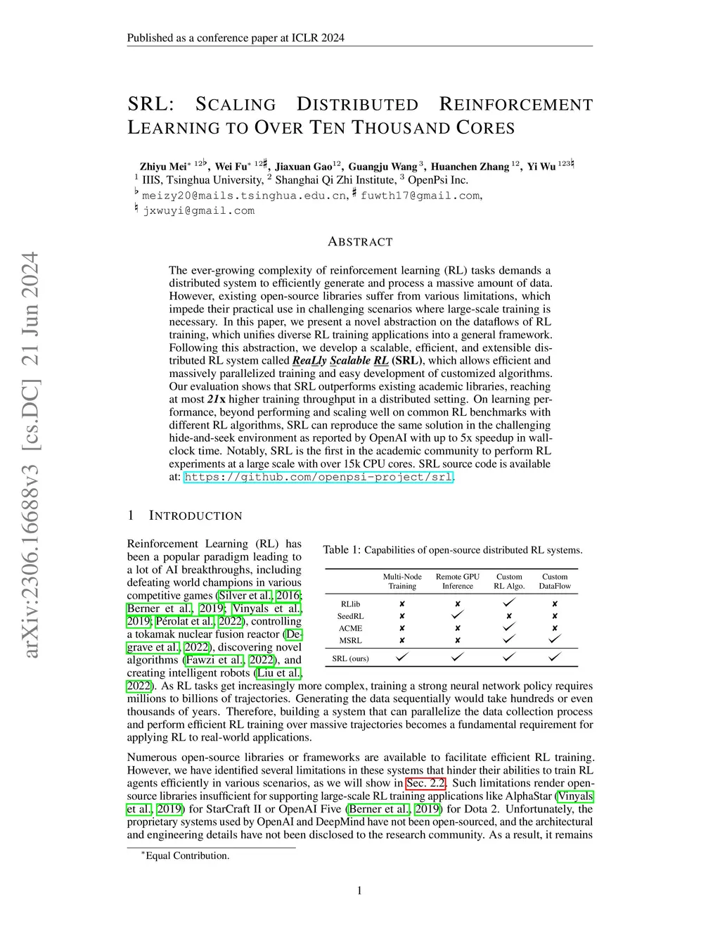 SRL: Scaling Distributed Reinforcement Learning to Over Ten Thousand