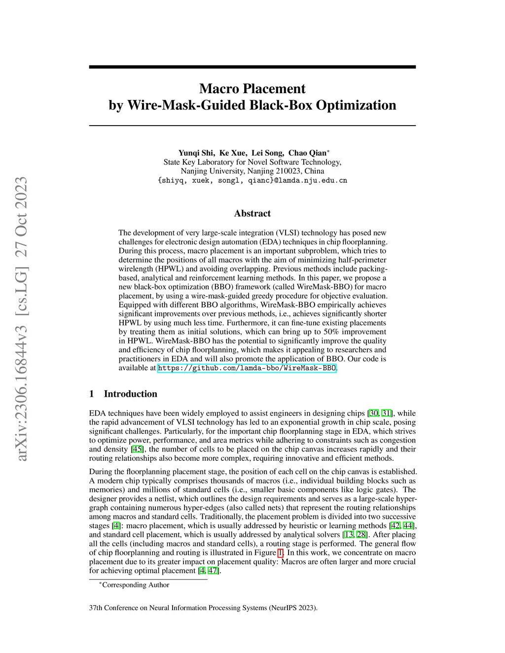 Macro Placement by Wire-Mask-Guided Black-Box Optimization
