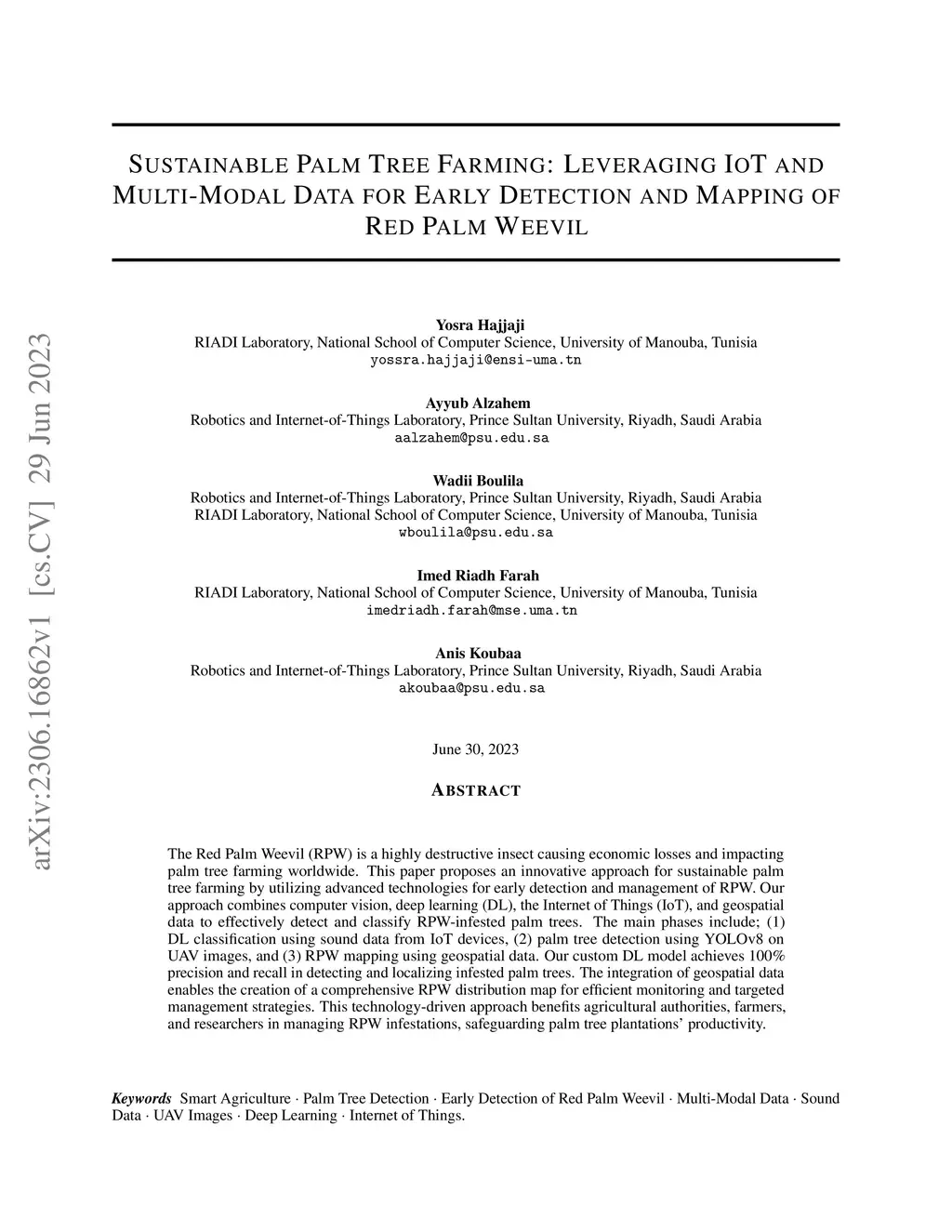 Sustainable Palm Tree Farming: Leveraging IoT and Multi-Modal Data for