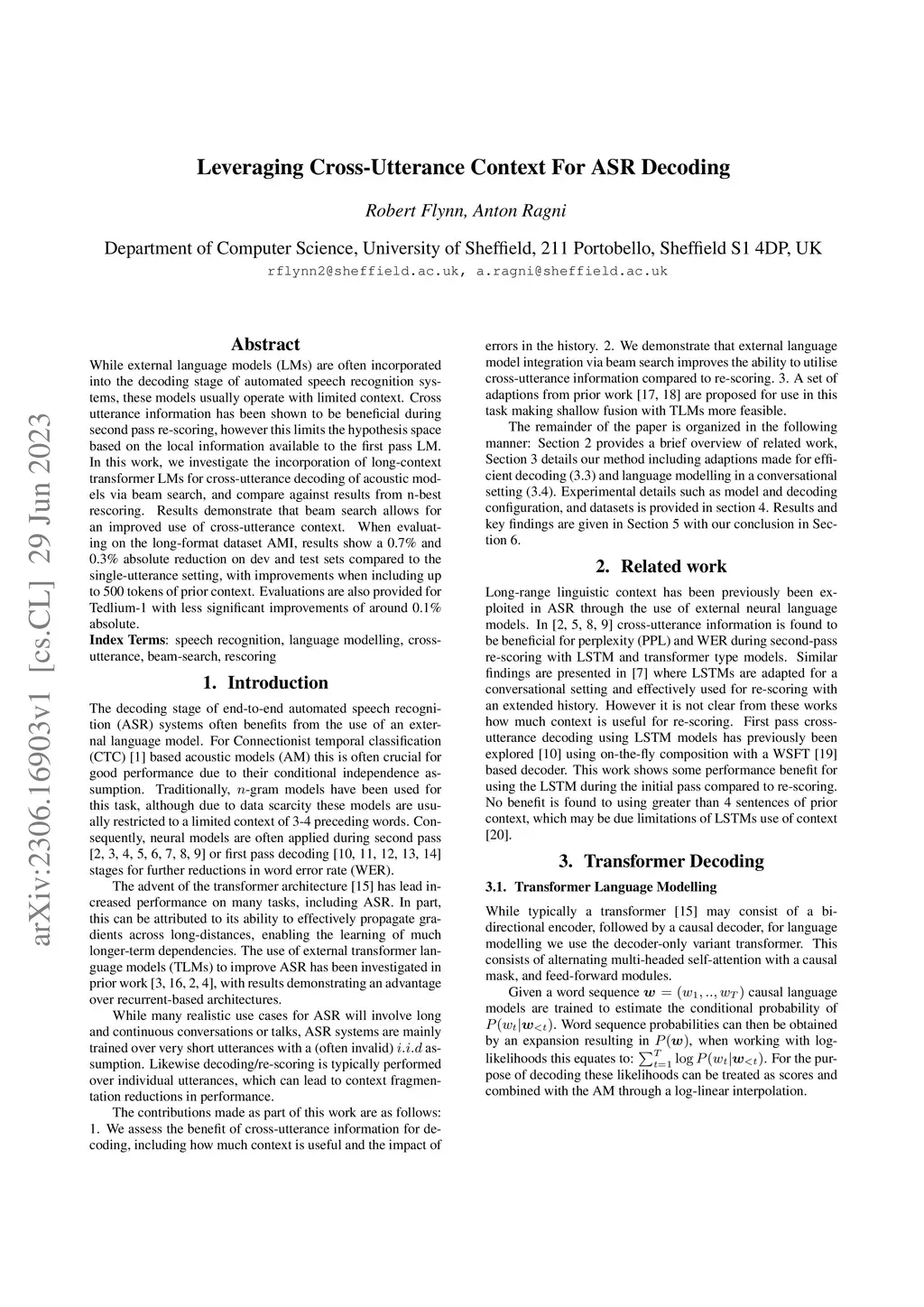 Leveraging Cross-Utterance Context For ASR Decoding
