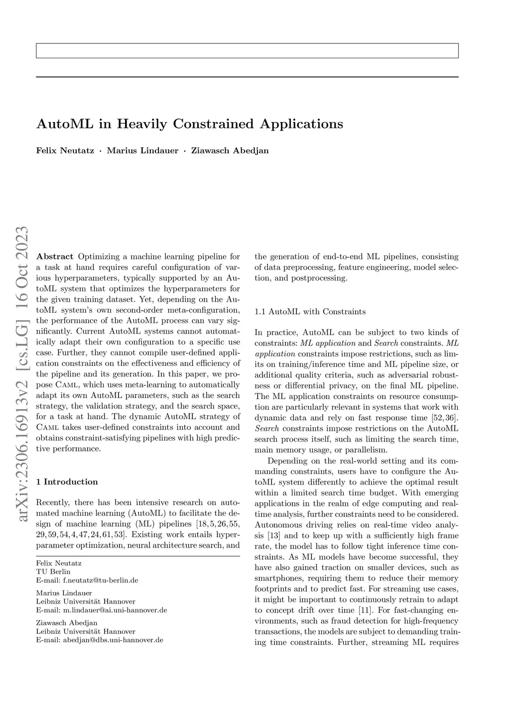 AutoML in Heavily Constrained Applications