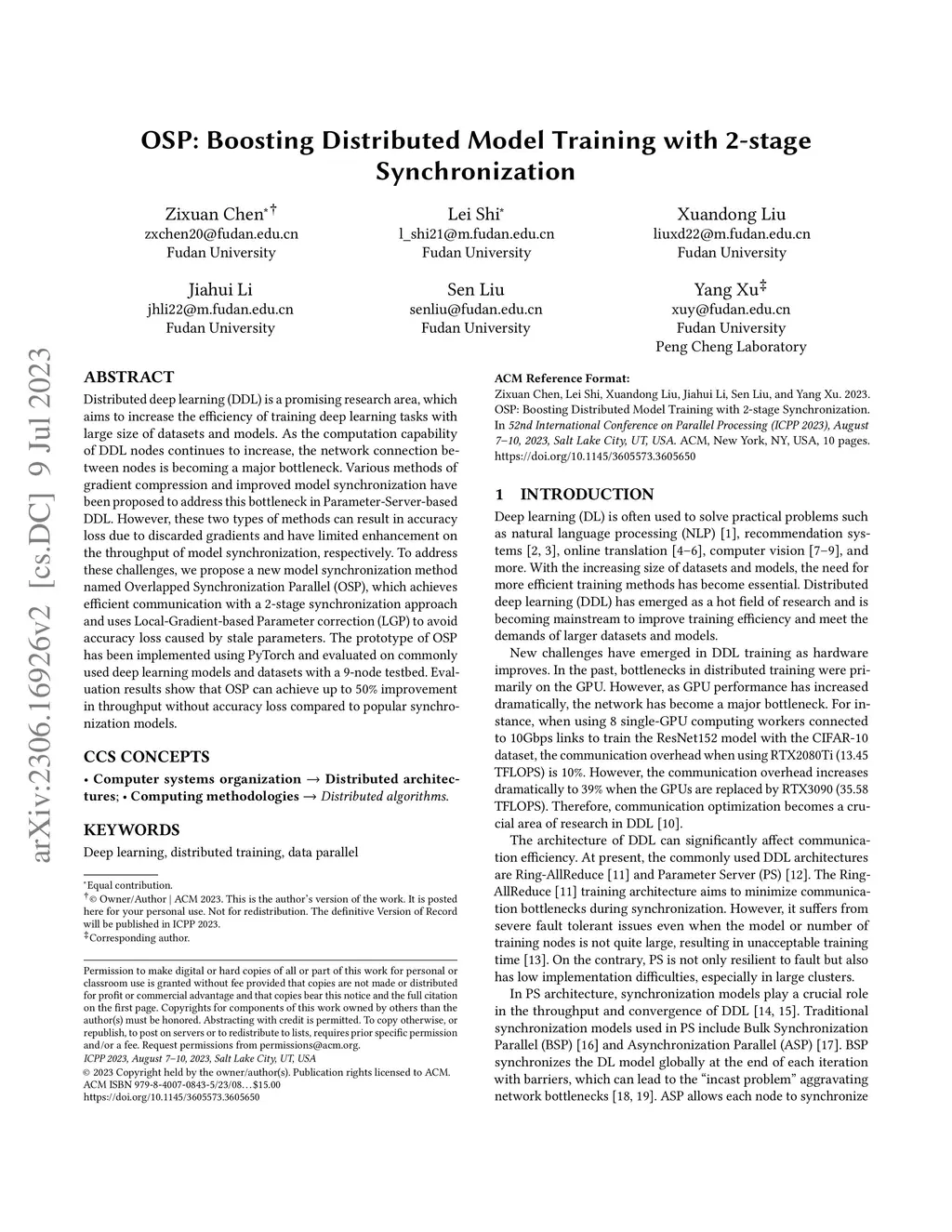 OSP: Boosting Distributed Model Training with 2-stage Synchronization