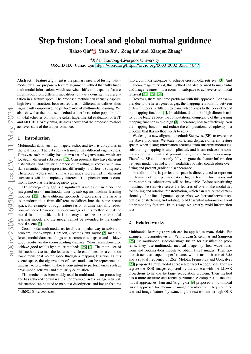 Feature alignment is the primary means of fusing multimodal data. We propose a feature alignment method that fully fuses multimodal information, which stepwise shifts and expands feature information from different modalities to have a consistent representation in a feature space. The proposed method can robustly capture high-level interactions between features of different modalities, thus significantly improving the performance of multimodal learning. We also show that the proposed method outperforms other popular multimodal schemes on multiple tasks. Experimental evaluation of ETT and MIT-BIH-Arrhythmia, datasets shows that the proposed method achieves state of the art performance.