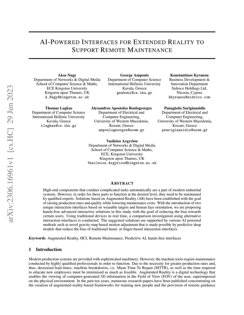High-end components that conduct complicated tasks automatically are a part of modern industrial systems. However, in order for these parts to function at the desired level, they need to be maintained by qualified experts. Solutions based on Augmented Reality (AR) have been established with the goal of raising production rates and quality while lowering maintenance costs. With the introduction of two unique interaction interfaces based on wearable targets and human face orientation, we are proposing hands-free advanced interactive solutions in this study with the goal of reducing the bias towards certain users. Using traditional devices in real time, a comparison investigation using alternative interaction interfaces is conducted. The suggested solutions are supported by various AI powered methods such as novel gravity-map based motion adjustment that is made possible by predictive deep models that reduce the bias of traditional hand- or finger-based interaction interfaces