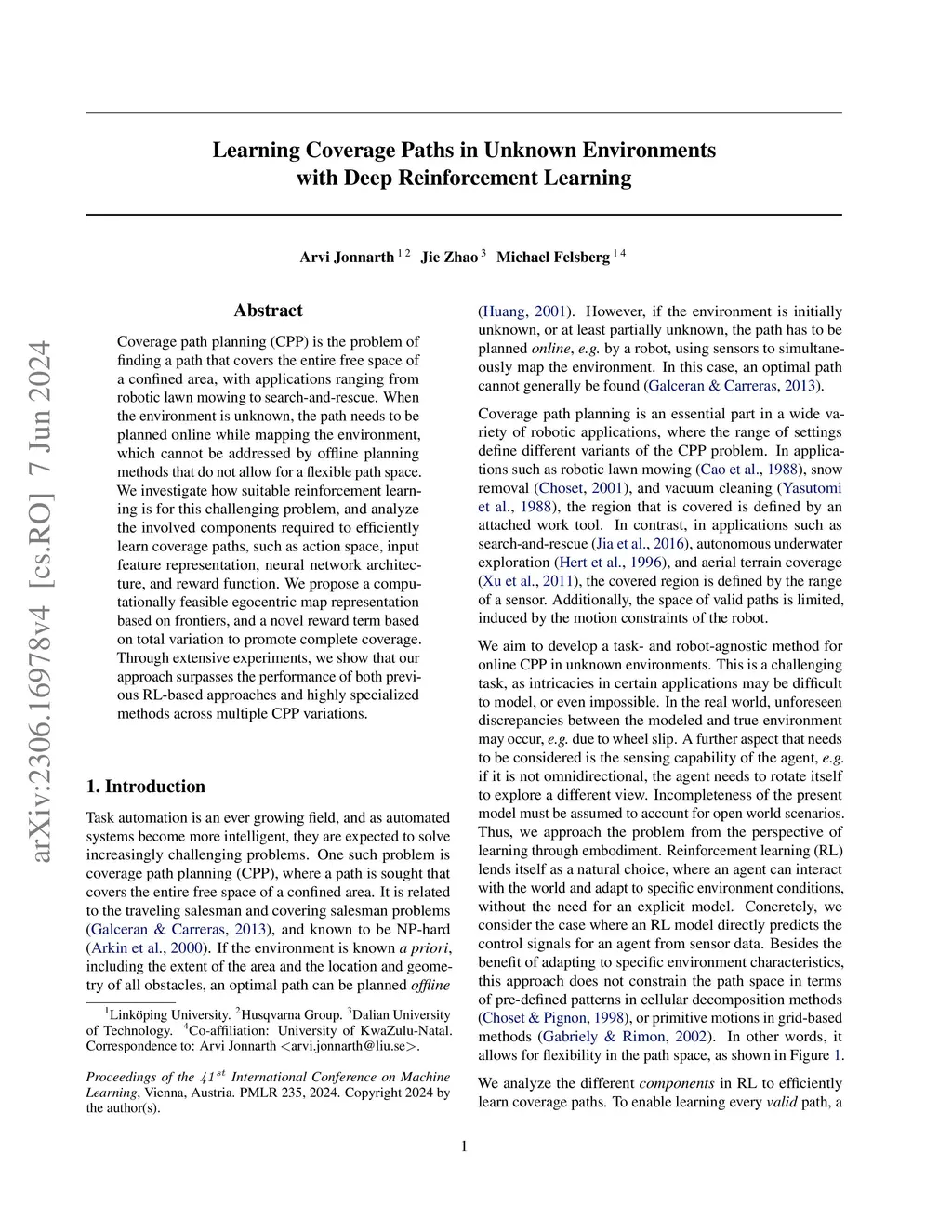Learning Coverage Paths in Unknown Environments with Deep Reinforcement
