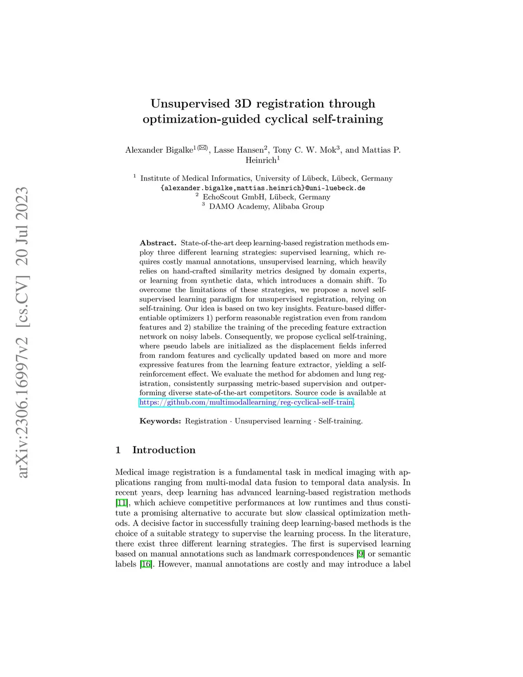 Unsupervised 3D registration through optimization-guided cyclical