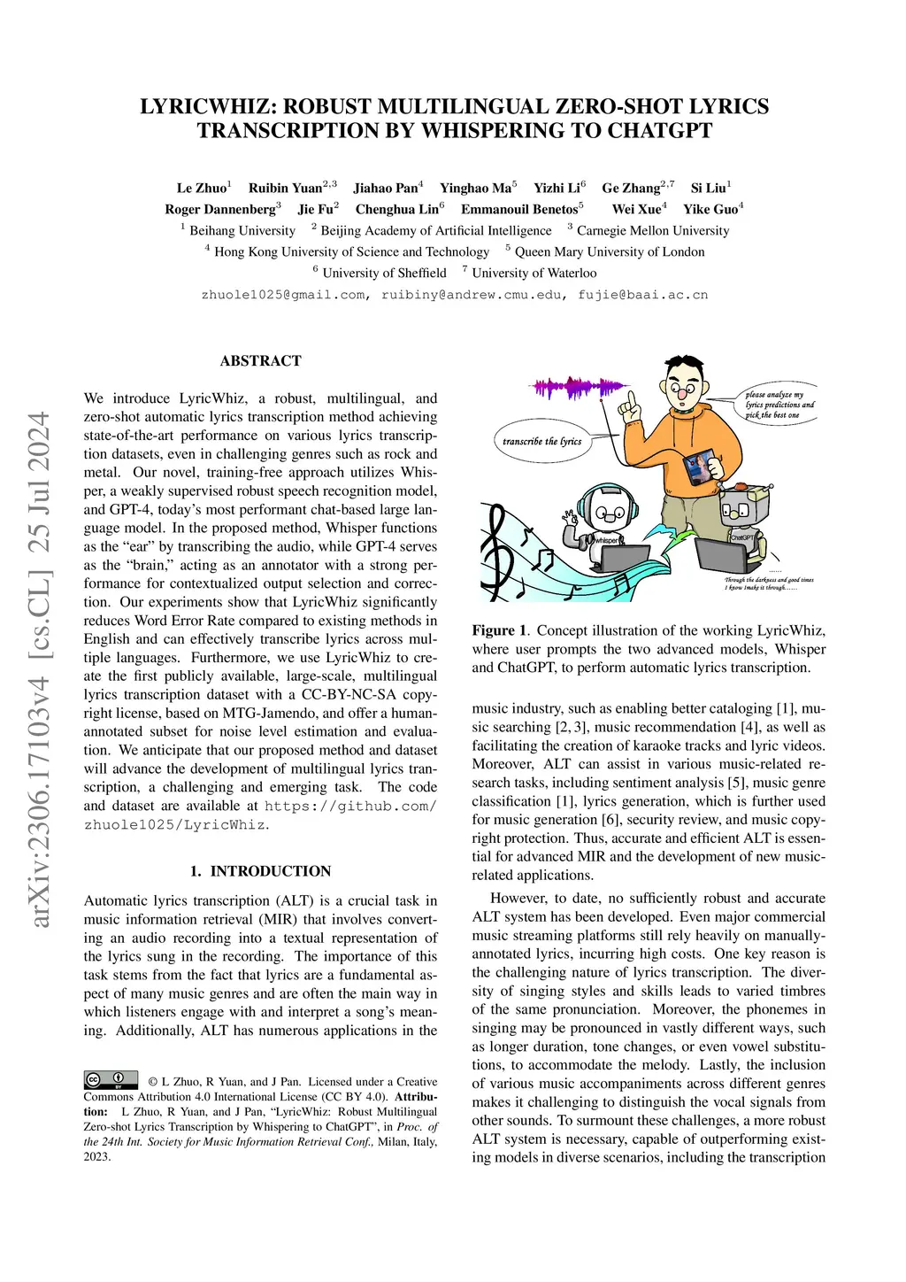 LyricWhiz: Robust Multilingual Zero-shot Lyrics Transcription by