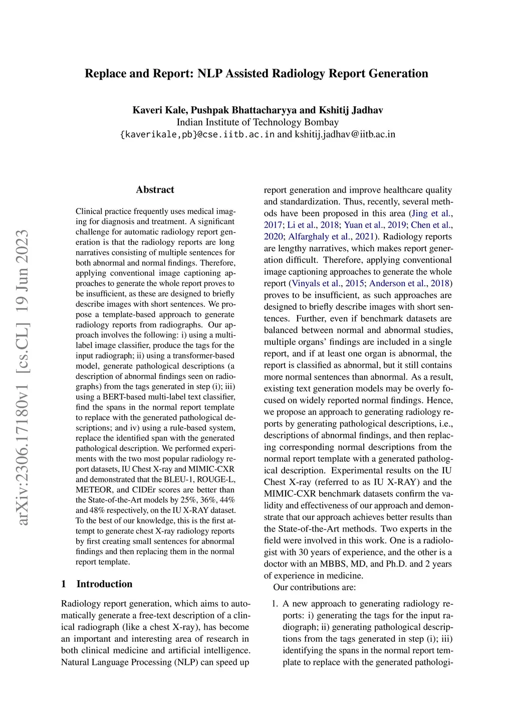 Replace and Report: NLP Assisted Radiology Report Generation
