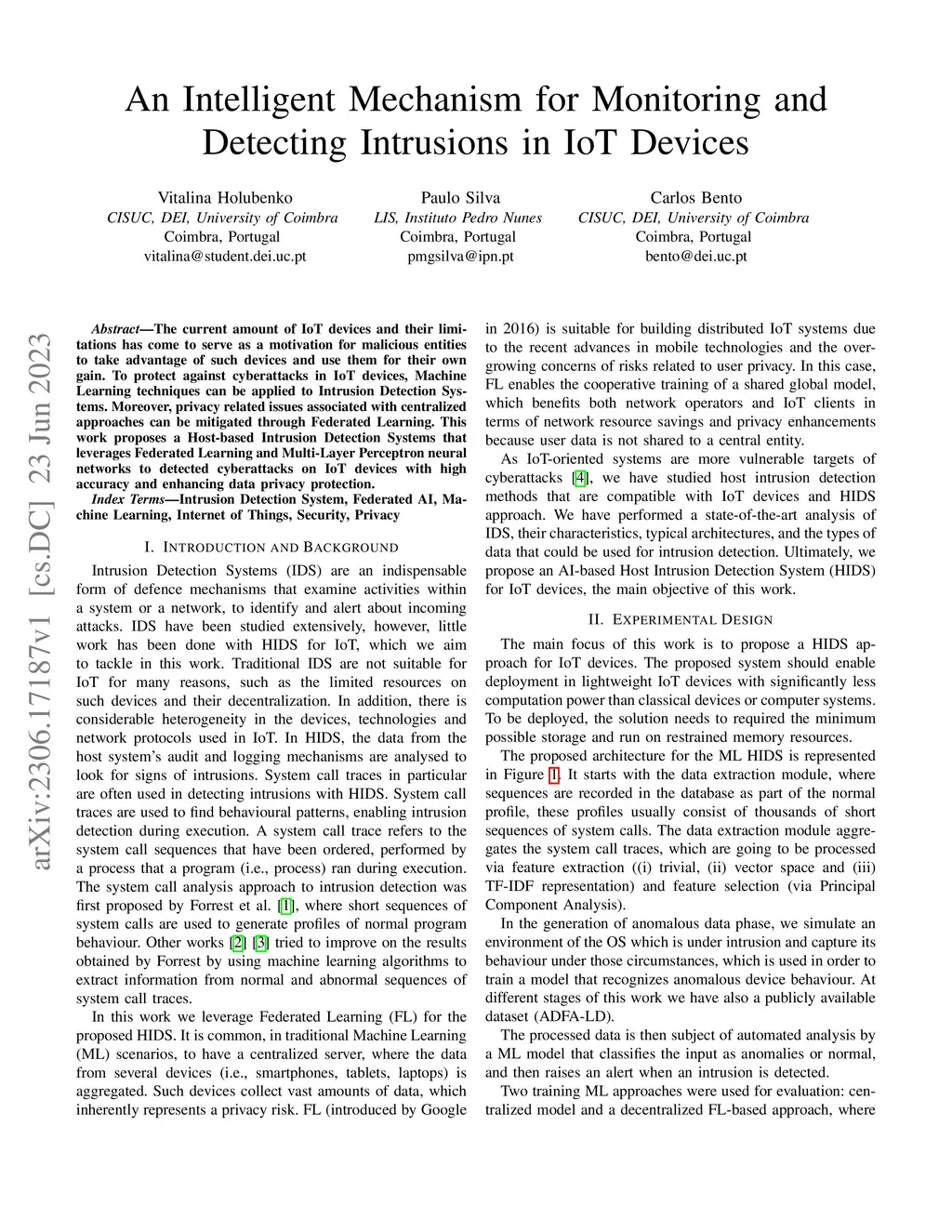 The current amount of IoT devices and their limitations has come to serve as a motivation for malicious entities to take advantage of such devices and use them for their own gain. To protect against cyberattacks in IoT devices, Machine Learning techniques can be applied to Intrusion Detection Systems. Moreover, privacy related issues associated with centralized approaches can be mitigated through Federated Learning. This work proposes a Host-based Intrusion Detection Systems that leverages Federated Learning and Multi-Layer Perceptron neural networks to detected cyberattacks on IoT devices with high accuracy and enhancing data privacy protection.