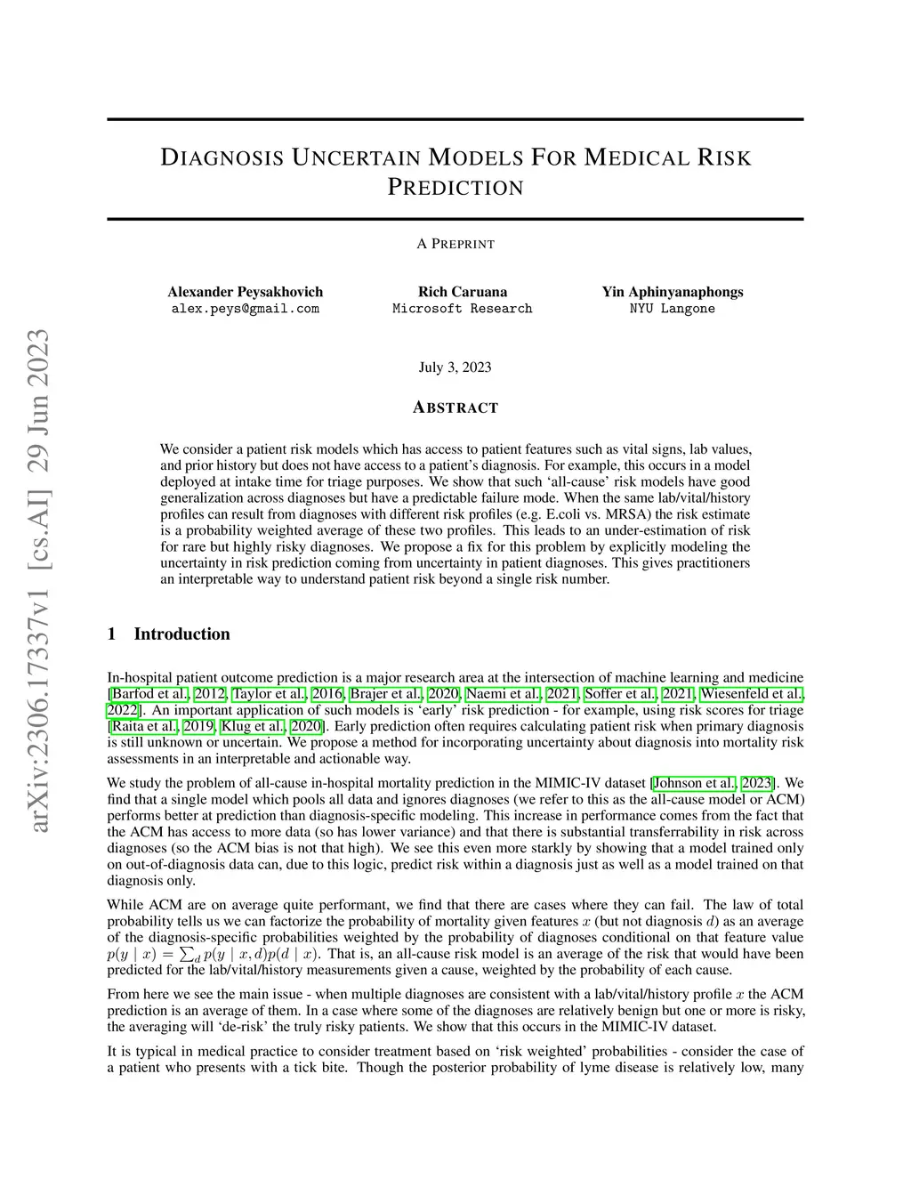 Diagnosis Uncertain Models For Medical Risk Prediction