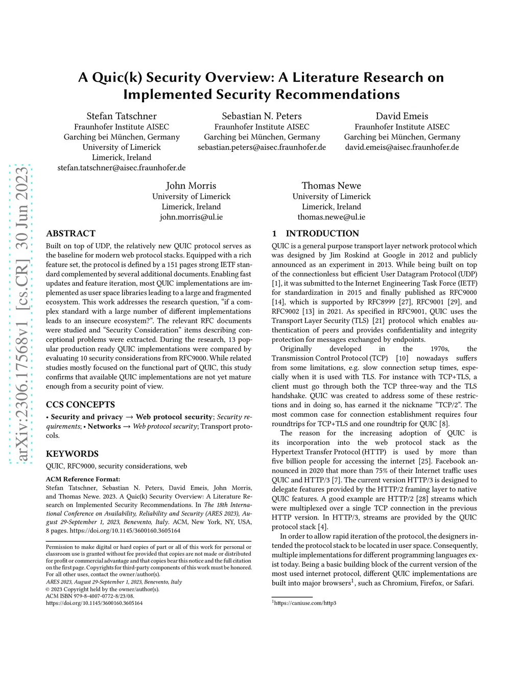 A Quic(k) Security Overview: A Literature Research on Implemented