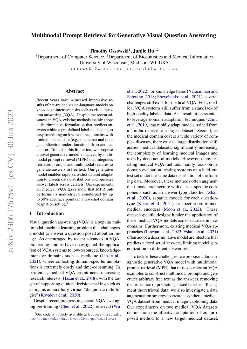 Multimodal Prompt Retrieval for Generative Visual Question Answering