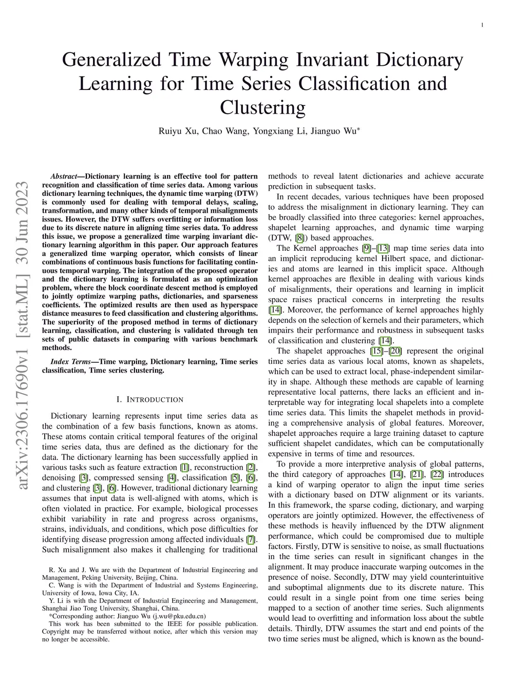 Generalized Time Warping Invariant Dictionary Learning for Time Series