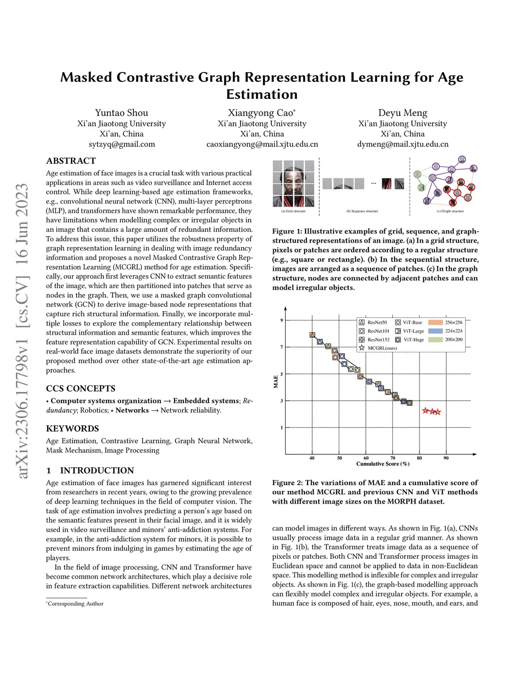Masked Contrastive Graph Representation Learning for Age Estimation