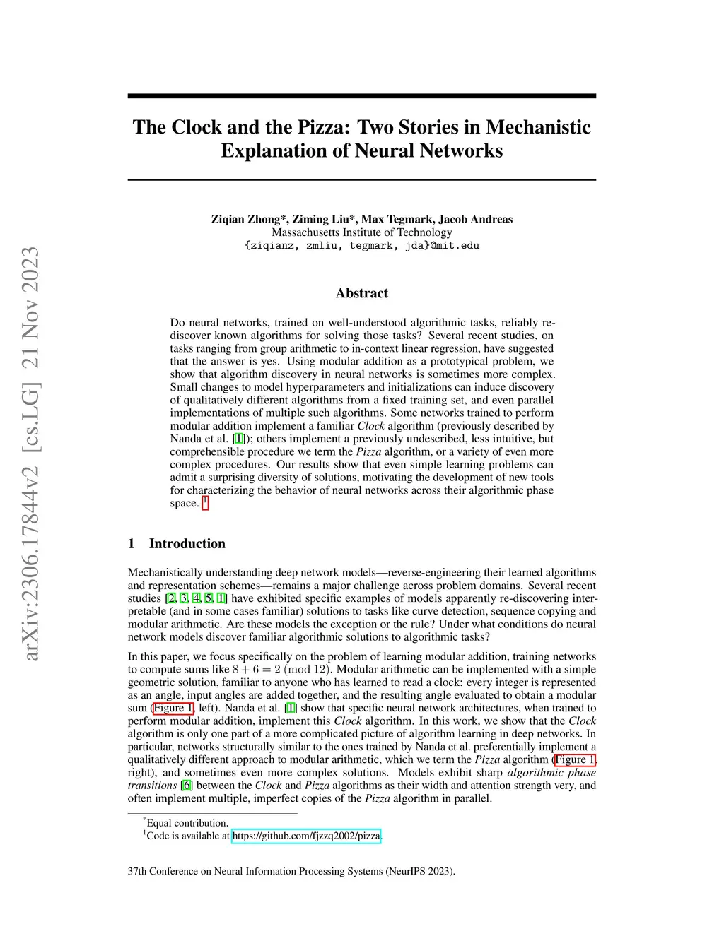 Do neural networks, trained on well-understood algorithmic tasks, reliably rediscover known algorithms for solving those tasks? Several recent studies, on tasks ranging from group arithmetic to in-context linear regression, have suggested that the answer is yes. Using modular addition as a prototypical problem, we show that algorithm discovery in neural networks is sometimes more complex. Small changes to model hyperparameters and initializations can induce the discovery of qualitatively different algorithms from a fixed training set, and even parallel implementations of multiple such algorithms. Some networks trained to perform modular addition implement a familiar Clock algorithm; others implement a previously undescribed, less intuitive, but comprehensible procedure which we term the Pizza algorithm, or a variety of even more complex procedures. Our results show that even simple learning problems can admit a surprising diversity of solutions, motivating the development of new tools for characterizing the behavior of neural networks across their algorithmic phase space.