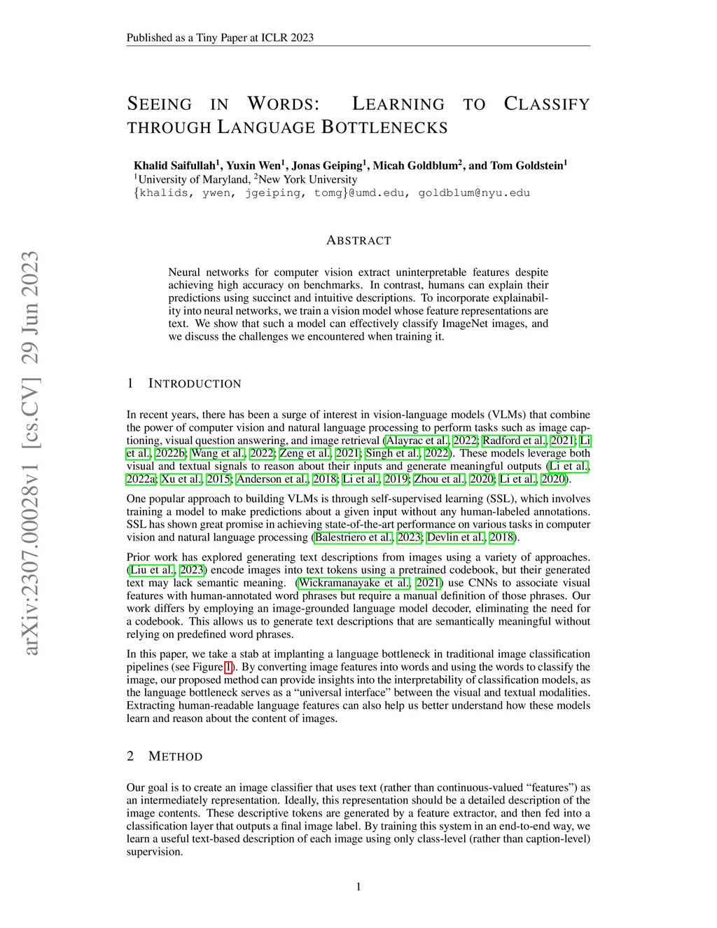Seeing in Words: Learning to Classify through Language Bottlenecks