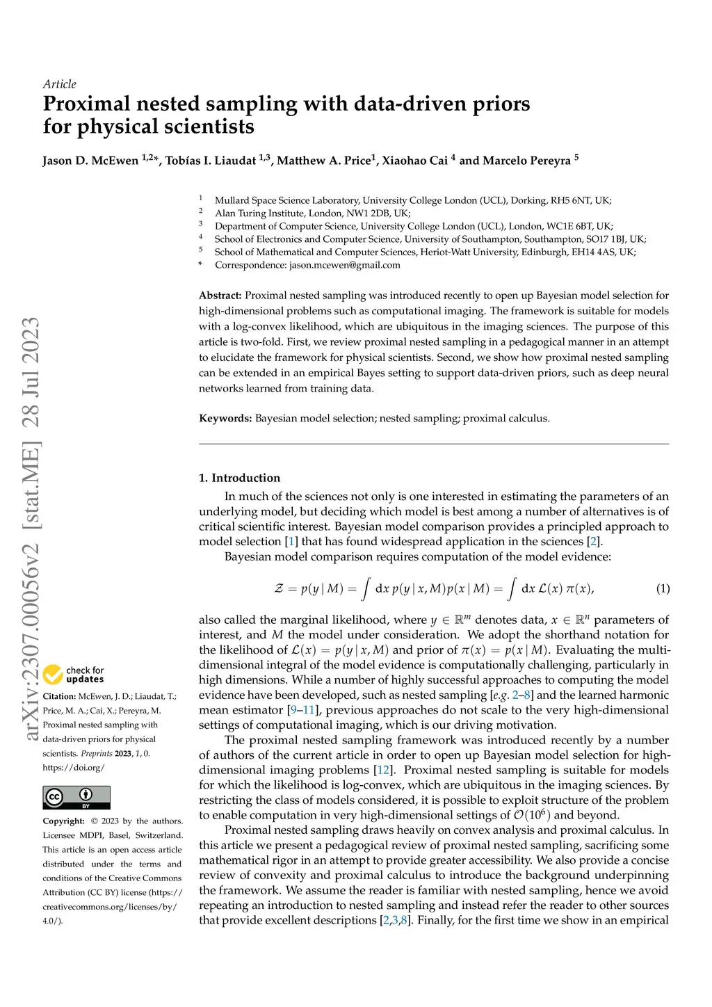 Proximal nested sampling with data-driven priors for physical scientists