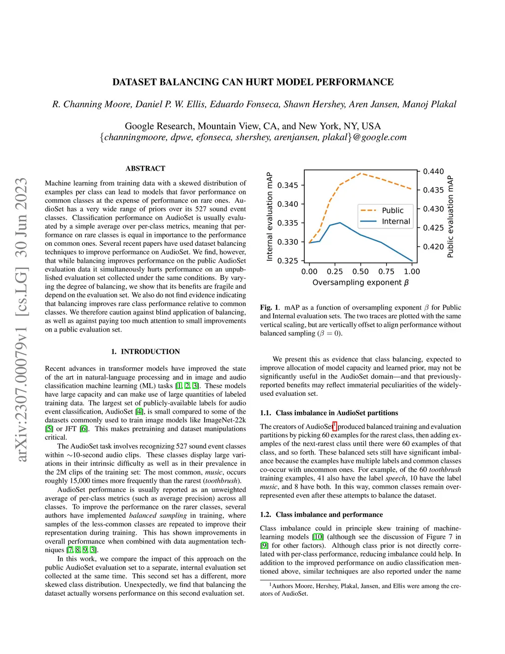 Machine learning from training data with a skewed distribution of examples per class can lead to models that favor performance on common classes at the expense of performance on rare ones. AudioSet has a very wide range of priors over its 527 sound event classes. Classification performance on AudioSet is usually evaluated by a simple average over per-class metrics, meaning that performance on rare classes is equal in importance to the performance on common ones. Several recent papers have used dataset balancing techniques to improve performance on AudioSet. We find, however, that while balancing improves performance on the public AudioSet evaluation data it simultaneously hurts performance on an unpublished evaluation set collected under the same conditions. By varying the degree of balancing, we show that its benefits are fragile and depend on the evaluation set. We also do not find evidence indicating that balancing improves rare class performance relative to common classes. We therefore caution against blind application of balancing, as well as against paying too much attention to small improvements on a public evaluation set.