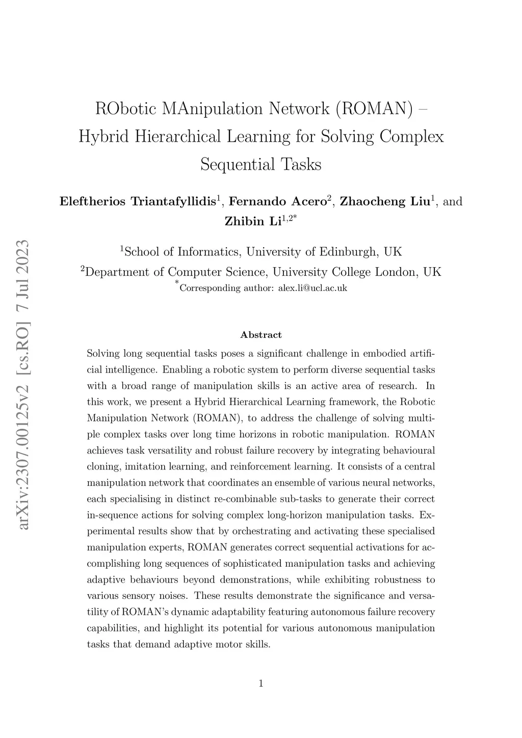 RObotic MAnipulation Network (ROMAN) Hybrid