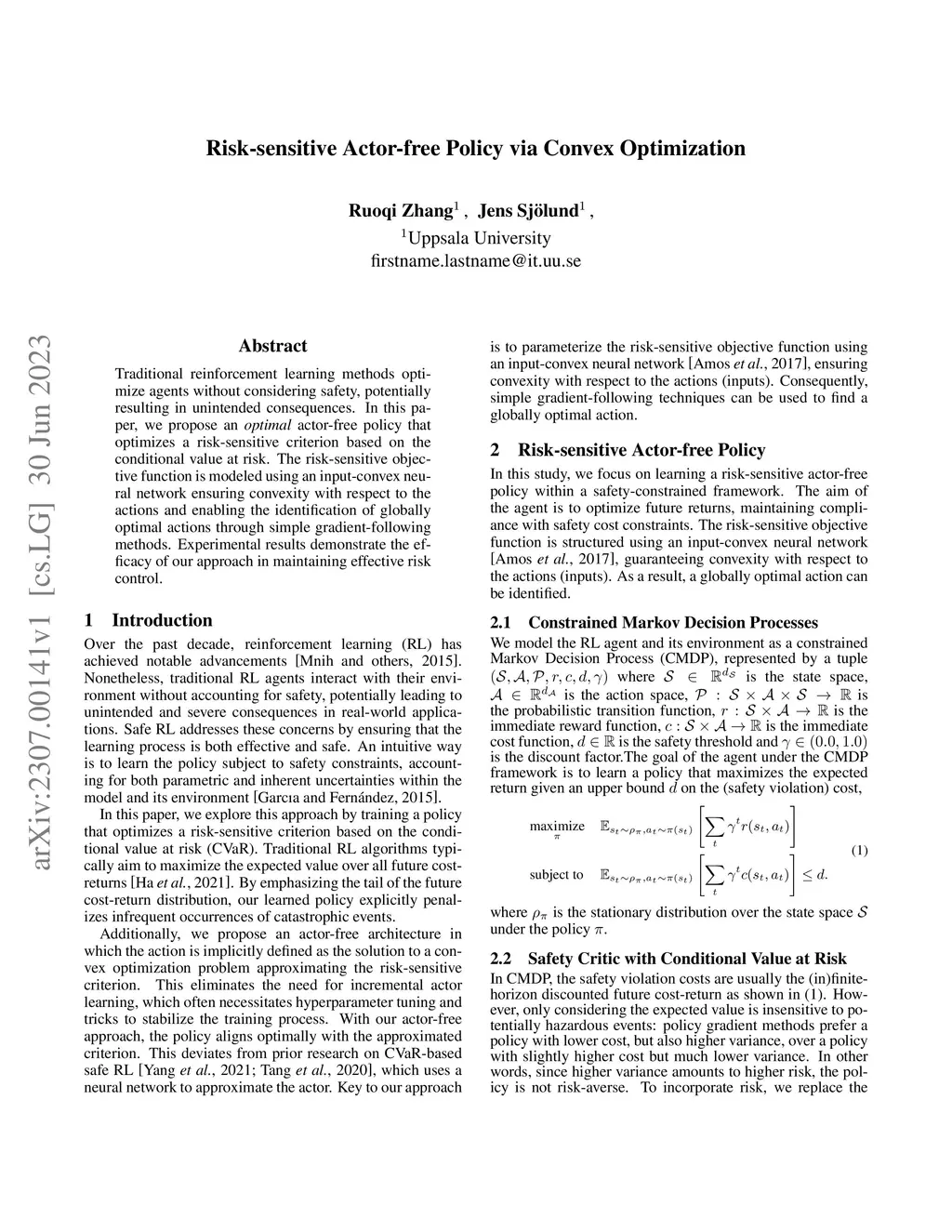 Traditional reinforcement learning methods optimize agents without considering safety, potentially resulting in unintended consequences. In this paper, we propose an optimal actor-free policy that optimizes a risk-sensitive criterion based on the conditional value at risk. The risk-sensitive objective function is modeled using an input-convex neural network ensuring convexity with respect to the actions and enabling the identification of globally optimal actions through simple gradient-following methods. Experimental results demonstrate the efficacy of our approach in maintaining effective risk control.