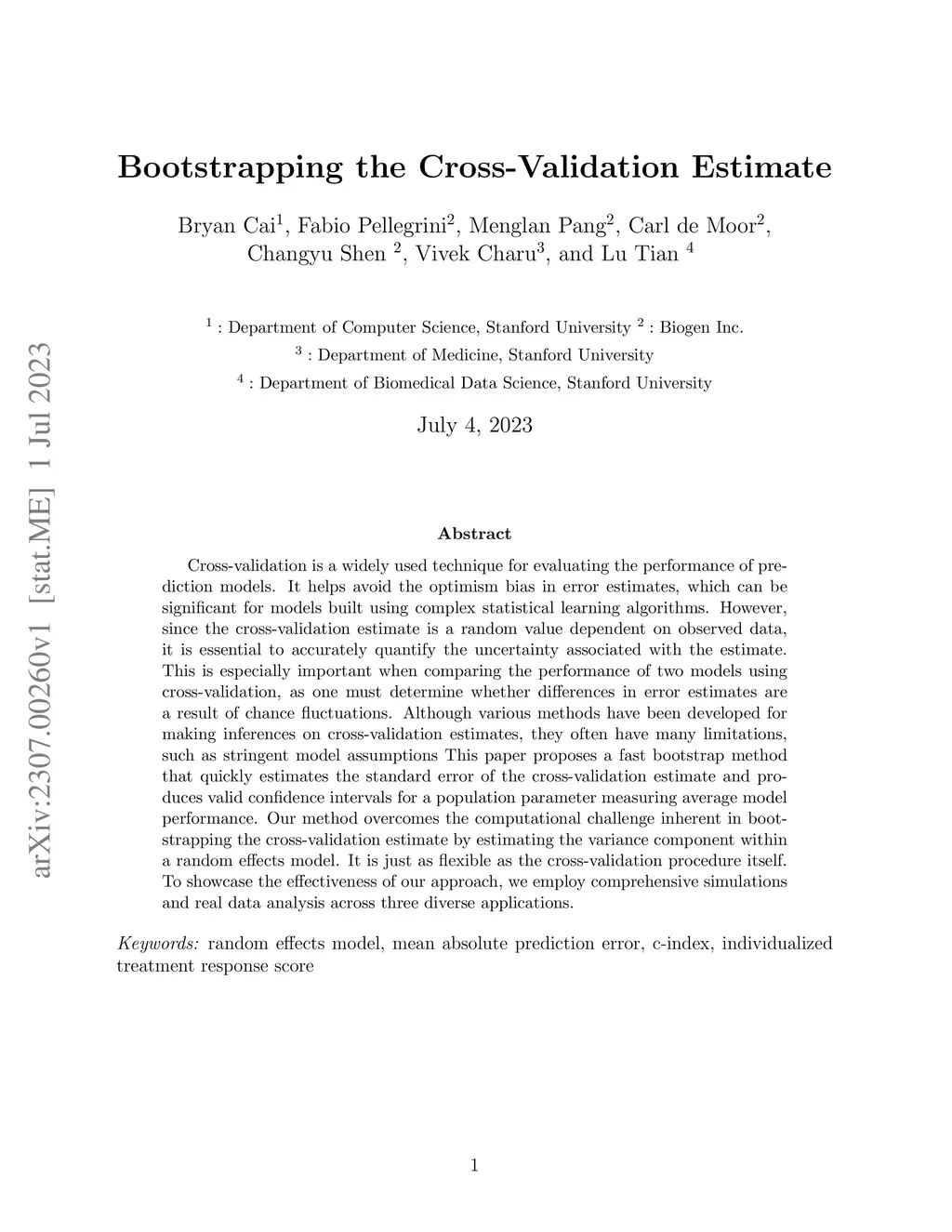 Cross-validation is a widely used technique for evaluating the performance of prediction models, ranging from simple binary classification to complex precision medicine strategies. It helps correct for optimism bias in error estimates, which can be significant for models built using complex statistical learning algorithms. However, since the cross-validation estimate is a random value dependent on observed data, it is essential to accurately quantify the uncertainty associated with the estimate. This is especially important when comparing the performance of two models using cross-validation, as one must determine whether differences in estimated error are due to chance. Although various methods have been developed to make inferences on cross-validation estimates, they often have many limitations, such as requiring stringent model assumptions. This paper proposes a fast bootstrap method that quickly estimates the standard error of the cross-validation estimate and produces valid confidence intervals for a population parameter measuring average model performance. Our method overcomes the computational challenges inherent in bootstrapping a cross-validation estimate by estimating the variance component within a random-effects model. It is also as flexible as the cross-validation procedure itself. To showcase the effectiveness of our approach, we conducted comprehensive simulations and real-data analysis across two applications.