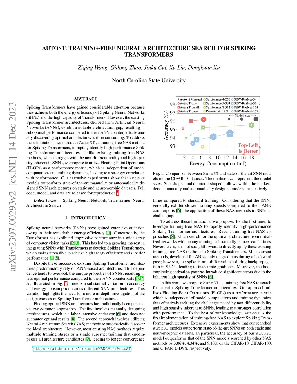 AutoST: Training-free Neural Architecture Search for Spiking