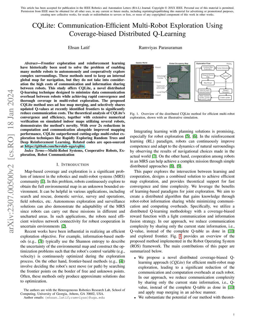 Frontier exploration and reinforcement learning have historically been used to solve the problem of enabling many mobile robots to autonomously and cooperatively explore complex surroundings. These methods need to keep an internal global map for navigation, but they do not take into consideration the high costs of communication and information sharing between robots. This study offers CQLite, a novel distributed Q-learning technique designed to minimize data communication overhead between robots while achieving rapid convergence and thorough coverage in multi-robot exploration. The proposed CQLite method uses ad hoc map merging, and selectively shares updated Q-values at recently identified frontiers to significantly reduce communication costs. The theoretical analysis of CQLite's convergence and efficiency, together with extensive numerical verification on simulated indoor maps utilizing several robots, demonstrates the method's novelty. With over 2x reductions in computation and communication alongside improved mapping performance, CQLite outperformed cutting-edge multi-robot exploration techniques like Rapidly Exploring Random Trees and Deep Reinforcement Learning. Related codes are open-sourced at \url{https://github.com/herolab-uga/cqlite}.