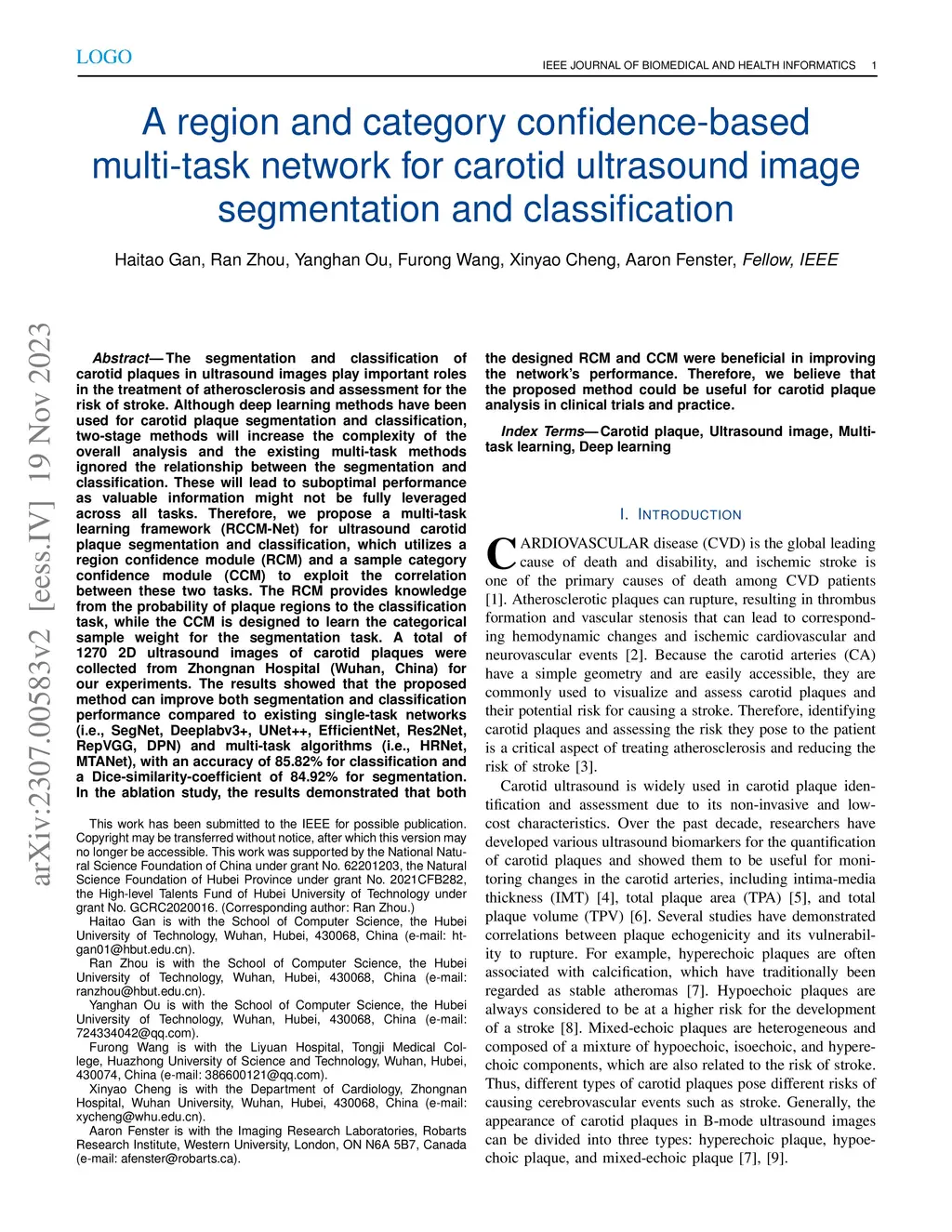 A region and category confidence-based multi-task network for carotid