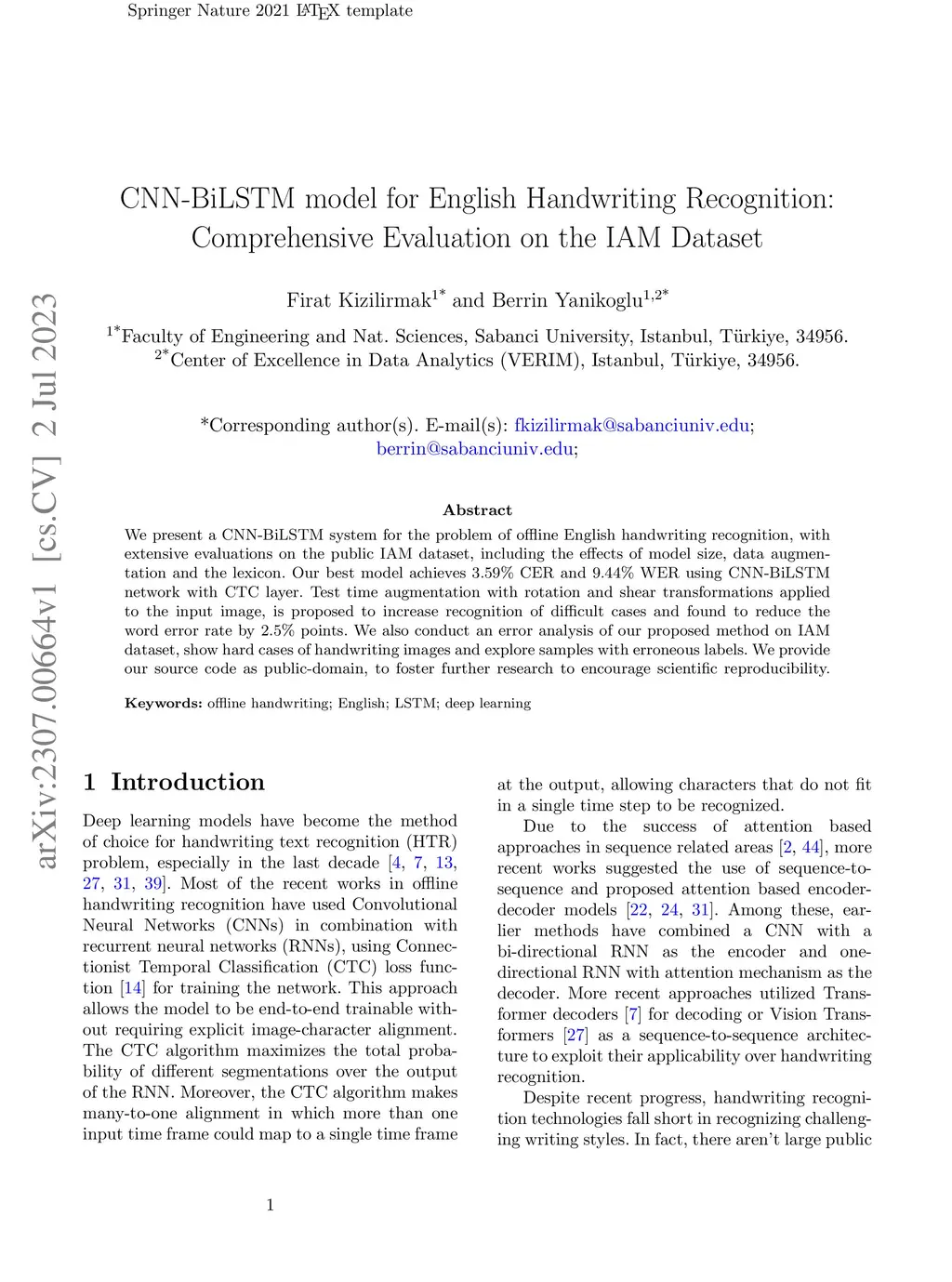 CNN-BiLSTM model for English Handwriting Recognition: Comprehensive