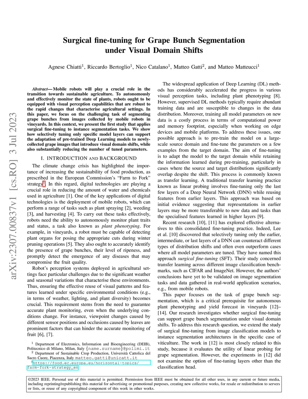 Surgical fine-tuning for Grape Bunch Segmentation under Visual Domain
