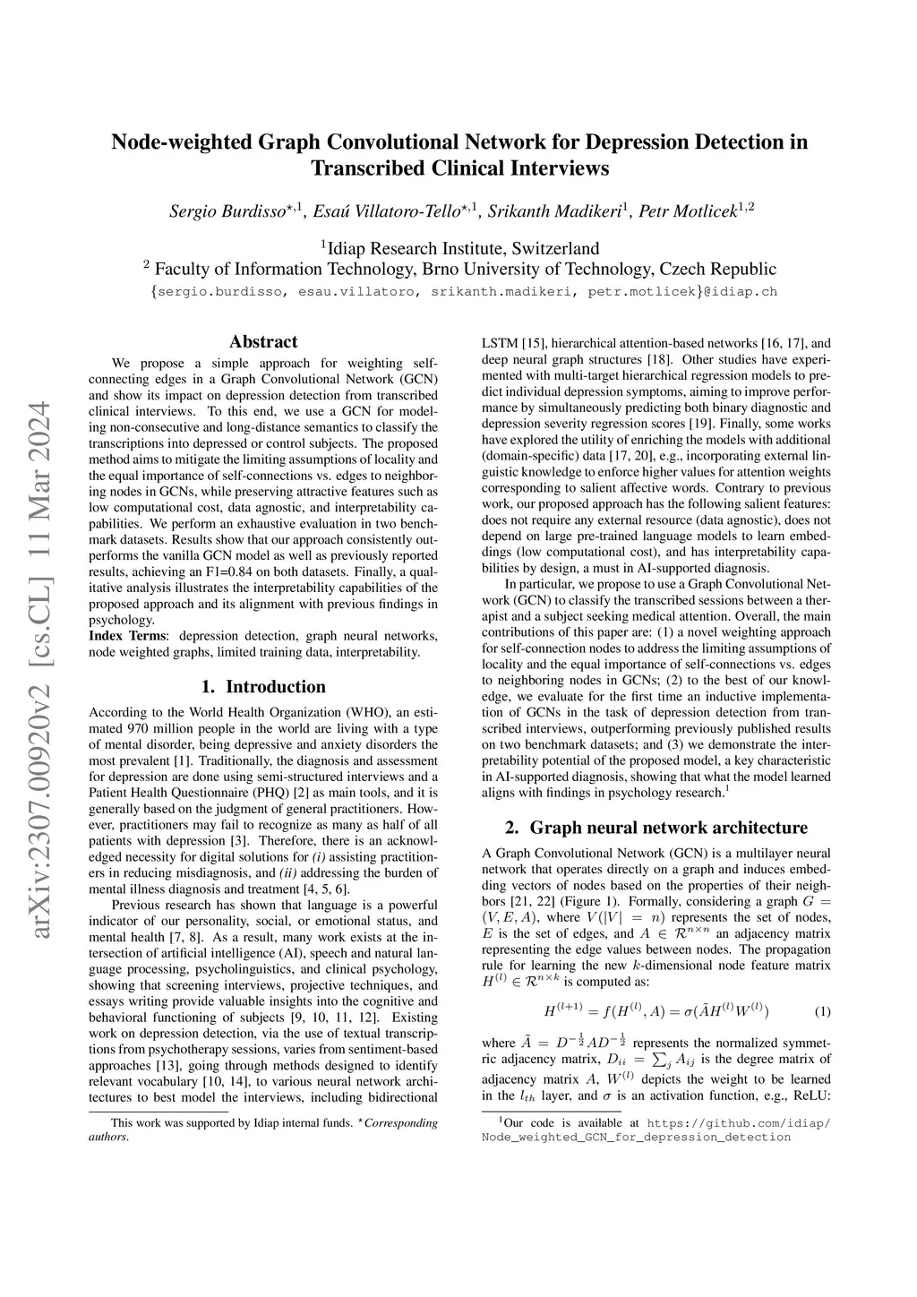 Node-weighted Graph Convolutional Network for Depression Detection in