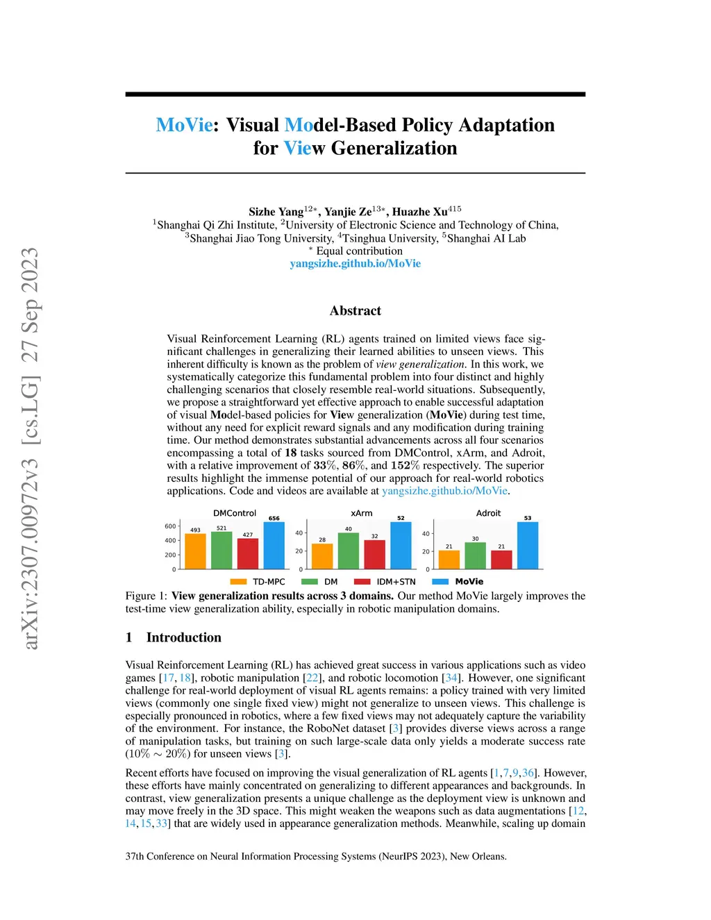 MoVie: Visual Model-Based Policy Adaptation for View Generalization