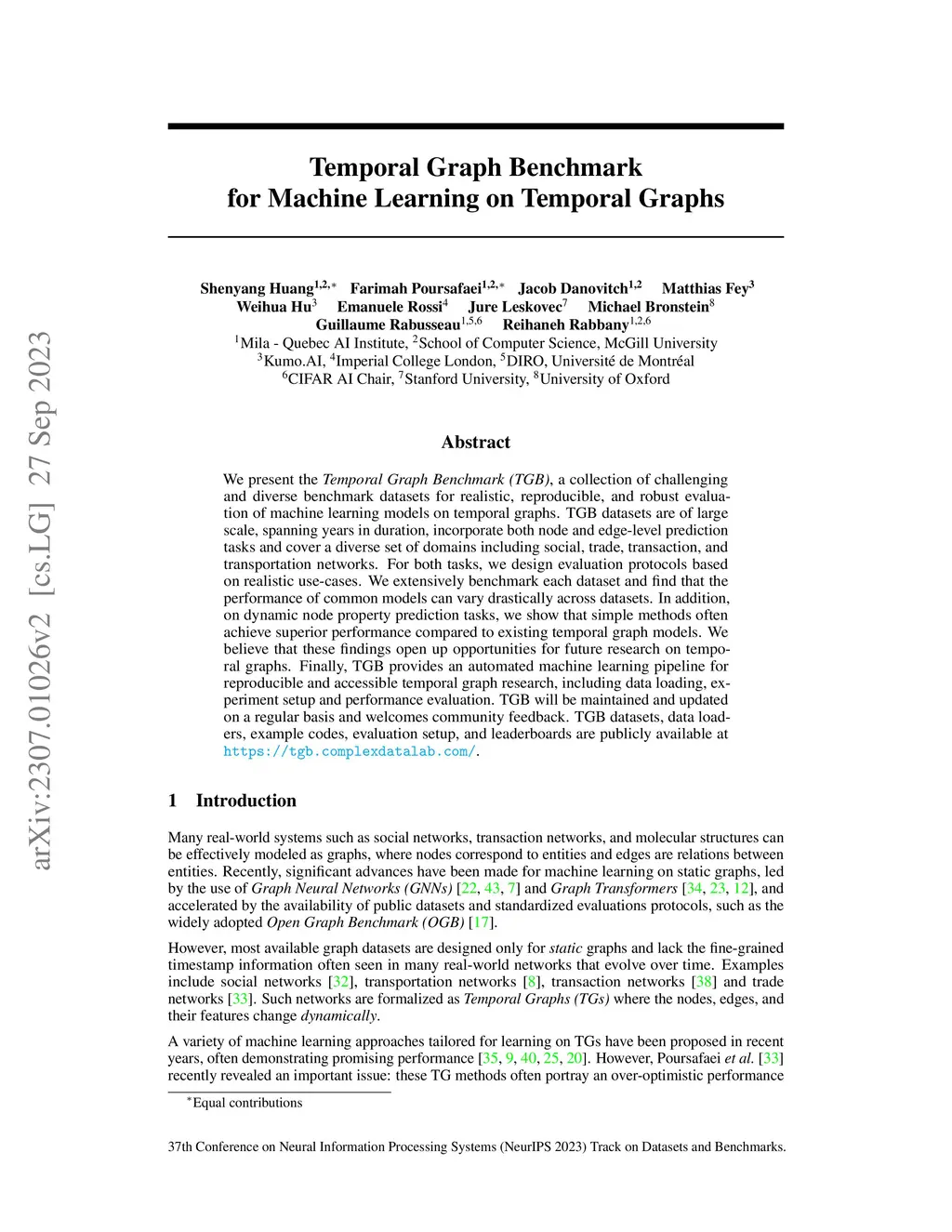 Temporal Graph Benchmark for Machine Learning on Temporal Graphs