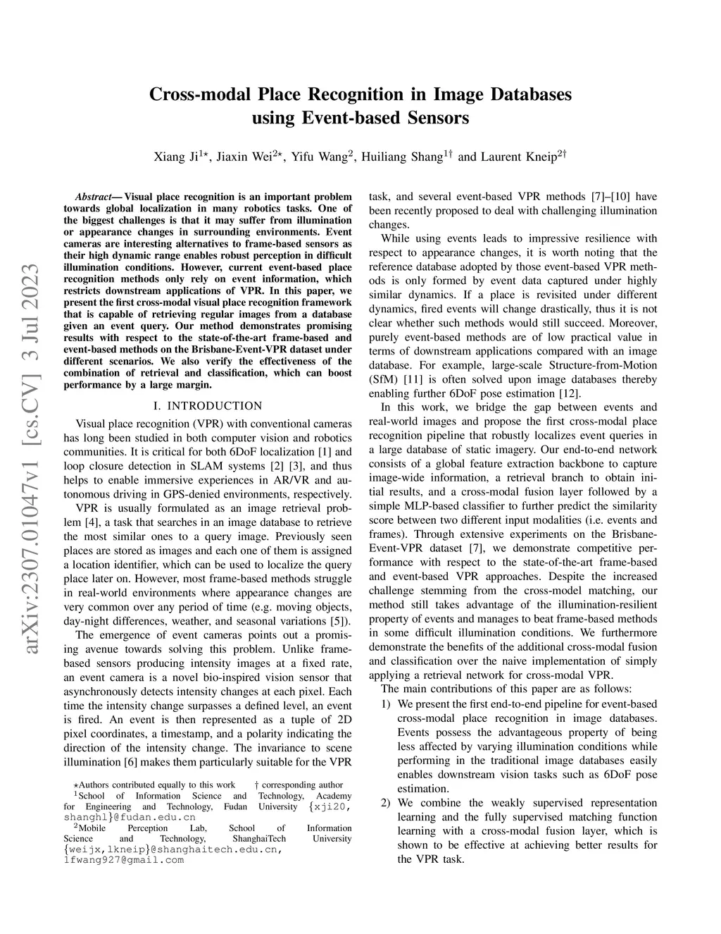 Cross-modal Place Recognition in Image Databases using Event-based