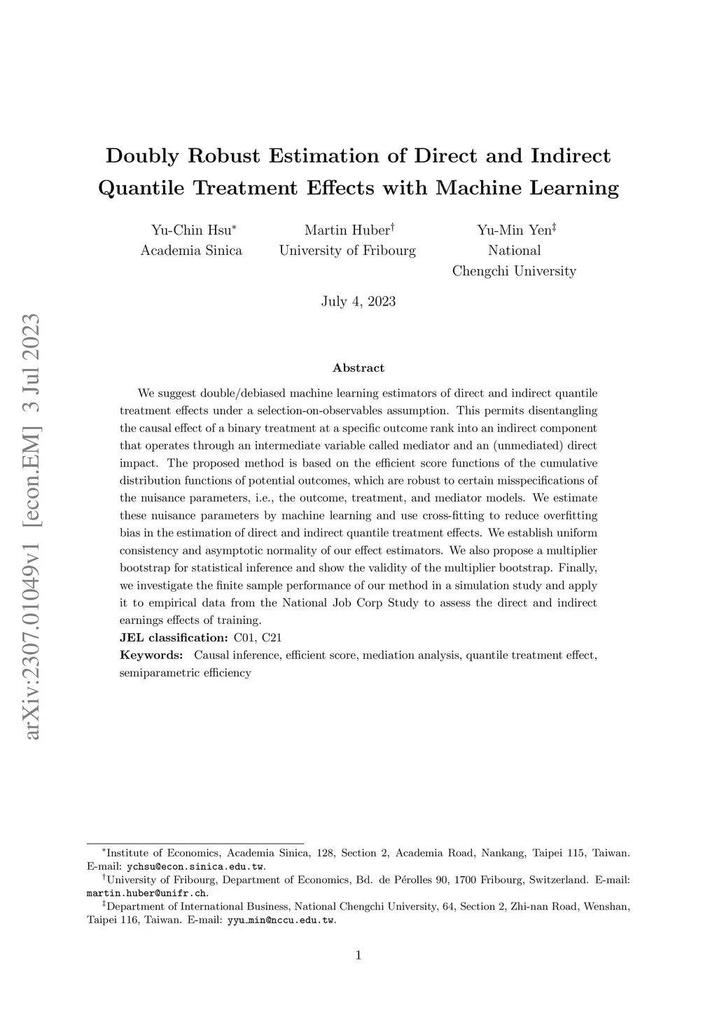 We suggest double/debiased machine learning estimators of direct and indirect quantile treatment effects under a selection-on-observables assumption. This permits disentangling the causal effect of a binary treatment at a specific outcome rank into an indirect component that operates through an intermediate variable called mediator and an (unmediated) direct impact. The proposed method is based on the efficient score functions of the cumulative distribution functions of potential outcomes, which are robust to certain misspecifications of the nuisance parameters, i.e., the outcome, treatment, and mediator models. We estimate these nuisance parameters by machine learning and use cross-fitting to reduce overfitting bias in the estimation of direct and indirect quantile treatment effects. We establish uniform consistency and asymptotic normality of our effect estimators. We also propose a multiplier bootstrap for statistical inference and show the validity of the multiplier bootstrap. Finally, we investigate the finite sample performance of our method in a simulation study and apply it to empirical data from the National Job Corp Study to assess the direct and indirect earnings effects of training.