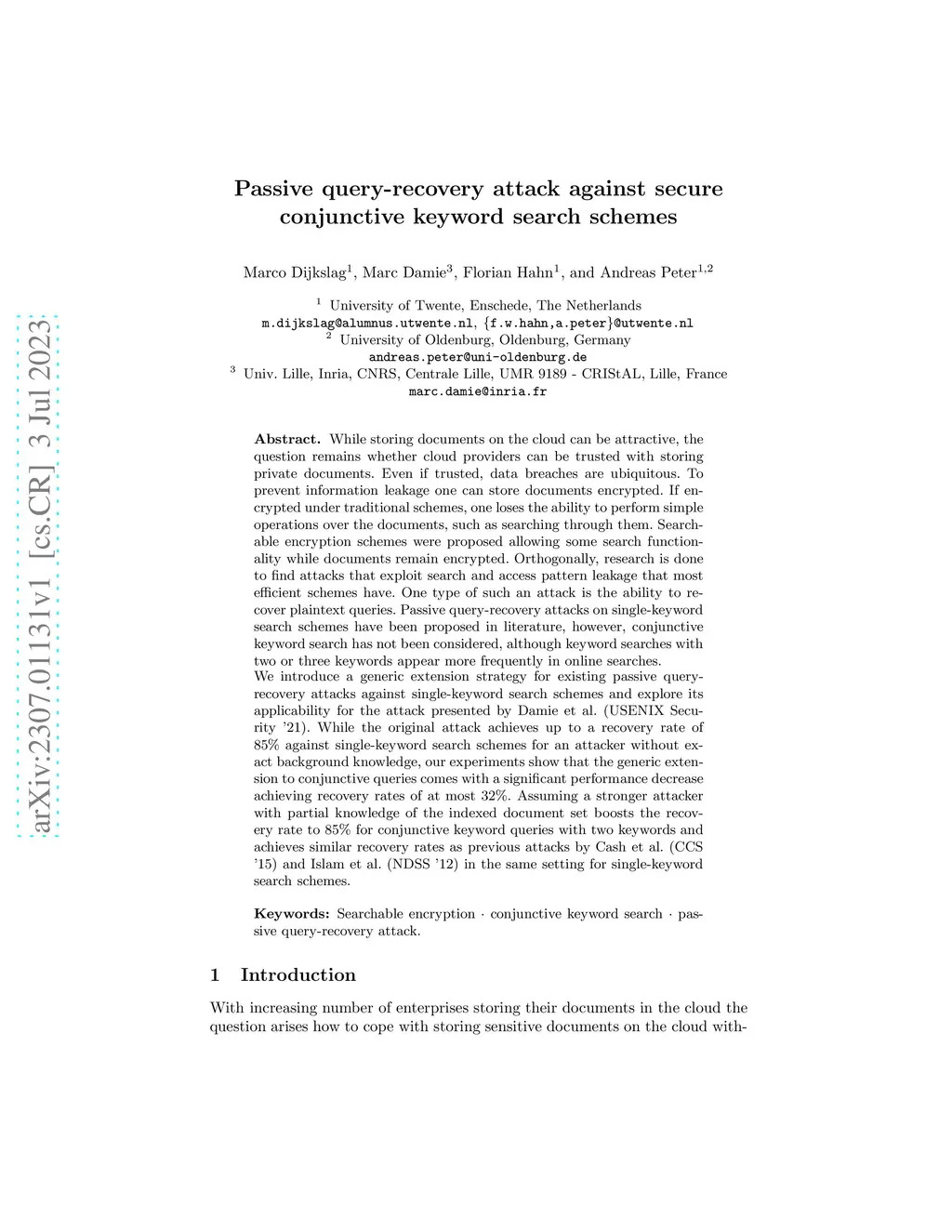 Passive Query-Recovery Attack Against Secure Conjunctive Keyword Search