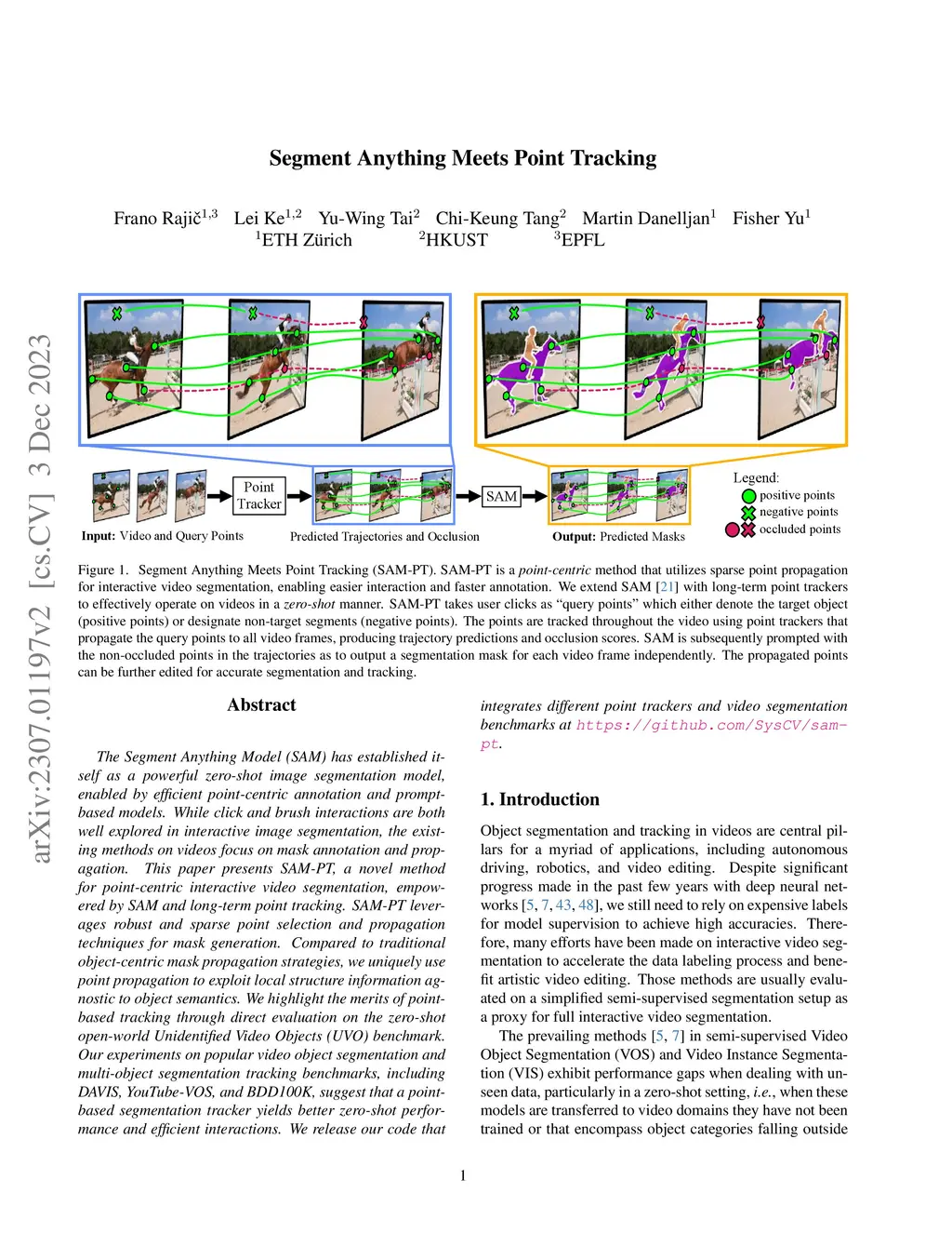 The Segment Anything Model (SAM) has established itself as a powerful zero-shot image segmentation model, enabled by efficient point-centric annotation and prompt-based models. While click and brush interactions are both well explored in interactive image segmentation, the existing methods on videos focus on mask annotation and propagation. This paper presents SAM-PT, a novel method for point-centric interactive video segmentation, empowered by SAM and long-term point tracking. SAM-PT leverages robust and sparse point selection and propagation techniques for mask generation. Compared to traditional object-centric mask propagation strategies, we uniquely use point propagation to exploit local structure information agnostic to object semantics. We highlight the merits of point-based tracking through direct evaluation on the zero-shot open-world Unidentified Video Objects (UVO) benchmark. Our experiments on popular video object segmentation and multi-object segmentation tracking benchmarks, including DAVIS, YouTube-VOS, and BDD100K, suggest that a point-based segmentation tracker yields better zero-shot performance and efficient interactions. We release our code that integrates different point trackers and video segmentation benchmarks at https://github.com/SysCV/sam-pt.