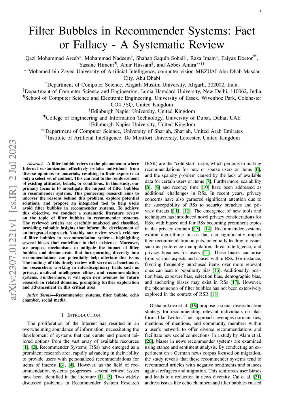Filter Bubbles in Recommender Systems: Fact or Fallacy -- A Systematic
