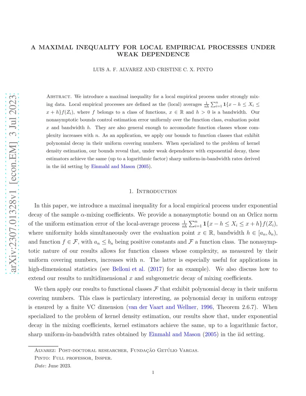 We introduce a maximal inequality for a local empirical process under strongly mixing data. Local empirical processes are defined as the (local) averages , where belongs to a class of functions, and is a bandwidth. Our nonasymptotic bounds control estimation error uniformly over the function class, evaluation point and bandwidth . They are also general enough to accomodate function classes whose complexity increases with . As an application, we apply our bounds to function classes that exhibit polynomial decay in their uniform covering numbers. When specialized to the problem of kernel density estimation, our bounds reveal that, under weak dependence with exponential decay, these estimators achieve the same (up to a logarithmic factor) sharp uniform-in-bandwidth rates derived in the iid setting by \cite{Einmahl2005}.