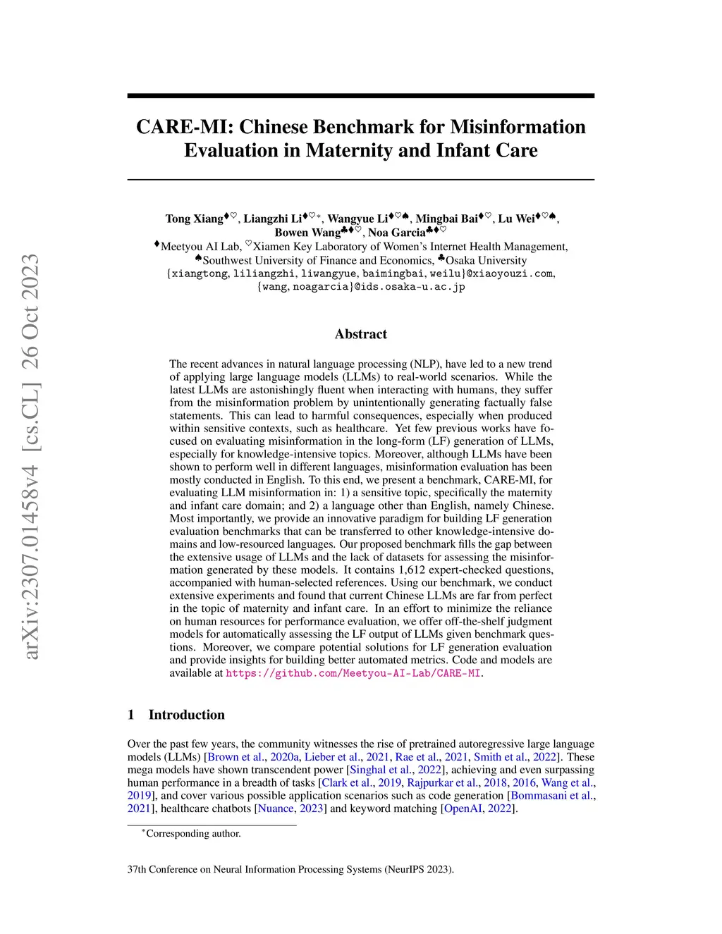 CARE-MI: Chinese Benchmark for Misinformation Evaluation in Maternity