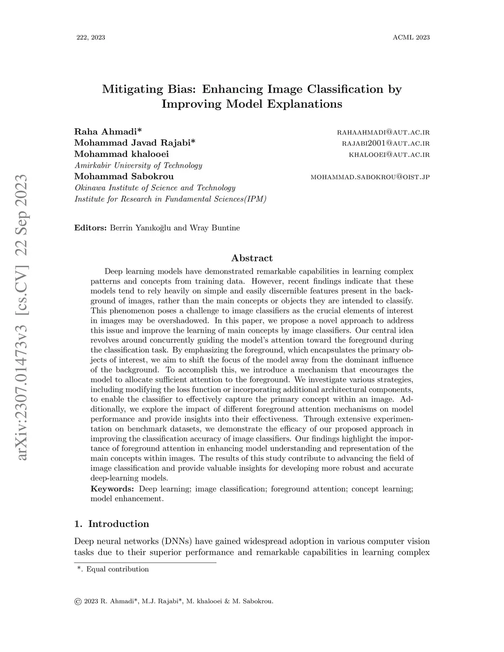 Deep learning models have demonstrated remarkable capabilities in learning complex patterns and concepts from training data. However, recent findings indicate that these models tend to rely heavily on simple and easily discernible features present in the background of images rather than the main concepts or objects they are intended to classify. This phenomenon poses a challenge to image classifiers as the crucial elements of interest in images may be overshadowed. In this paper, we propose a novel approach to address this issue and improve the learning of main concepts by image classifiers. Our central idea revolves around concurrently guiding the model's attention toward the foreground during the classification task. By emphasizing the foreground, which encapsulates the primary objects of interest, we aim to shift the focus of the model away from the dominant influence of the background. To accomplish this, we introduce a mechanism that encourages the model to allocate sufficient attention to the foreground. We investigate various strategies, including modifying the loss function or incorporating additional architectural components, to enable the classifier to effectively capture the primary concept within an image. Additionally, we explore the impact of different foreground attention mechanisms on model performance and provide insights into their effectiveness. Through extensive experimentation on benchmark datasets, we demonstrate the efficacy of our proposed approach in improving the classification accuracy of image classifiers. Our findings highlight the importance of foreground attention in enhancing model understanding and representation of the main concepts within images. The results of this study contribute to advancing the field of image classification and provide valuable insights for developing more robust and accurate deep-learning models.