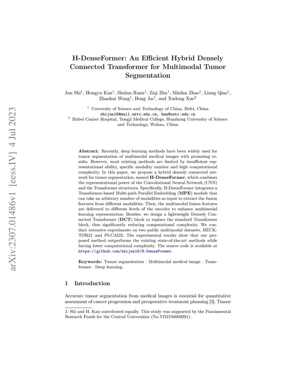 H-DenseFormer: An Efficient Hybrid Densely Connected Transformer for