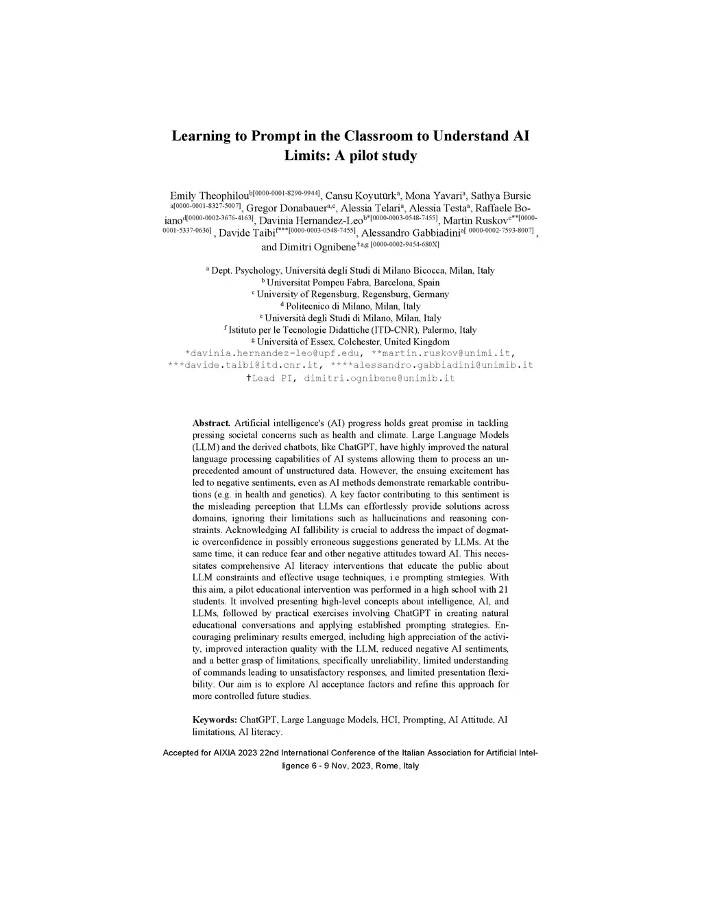 Learning to Prompt in the Classroom to Understand AI Limits: A pilot