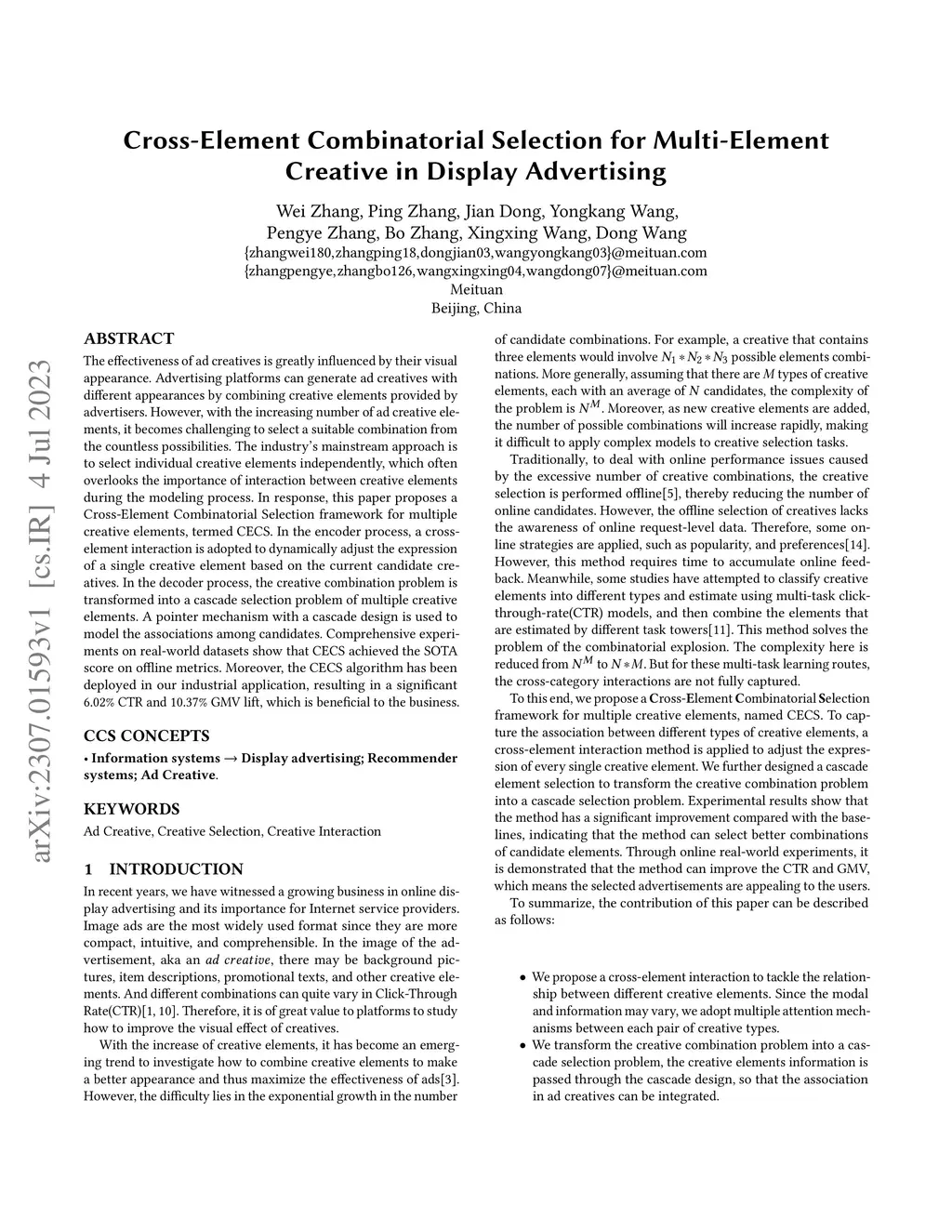 Cross-Element Combinatorial Selection for Multi-Element Creative in