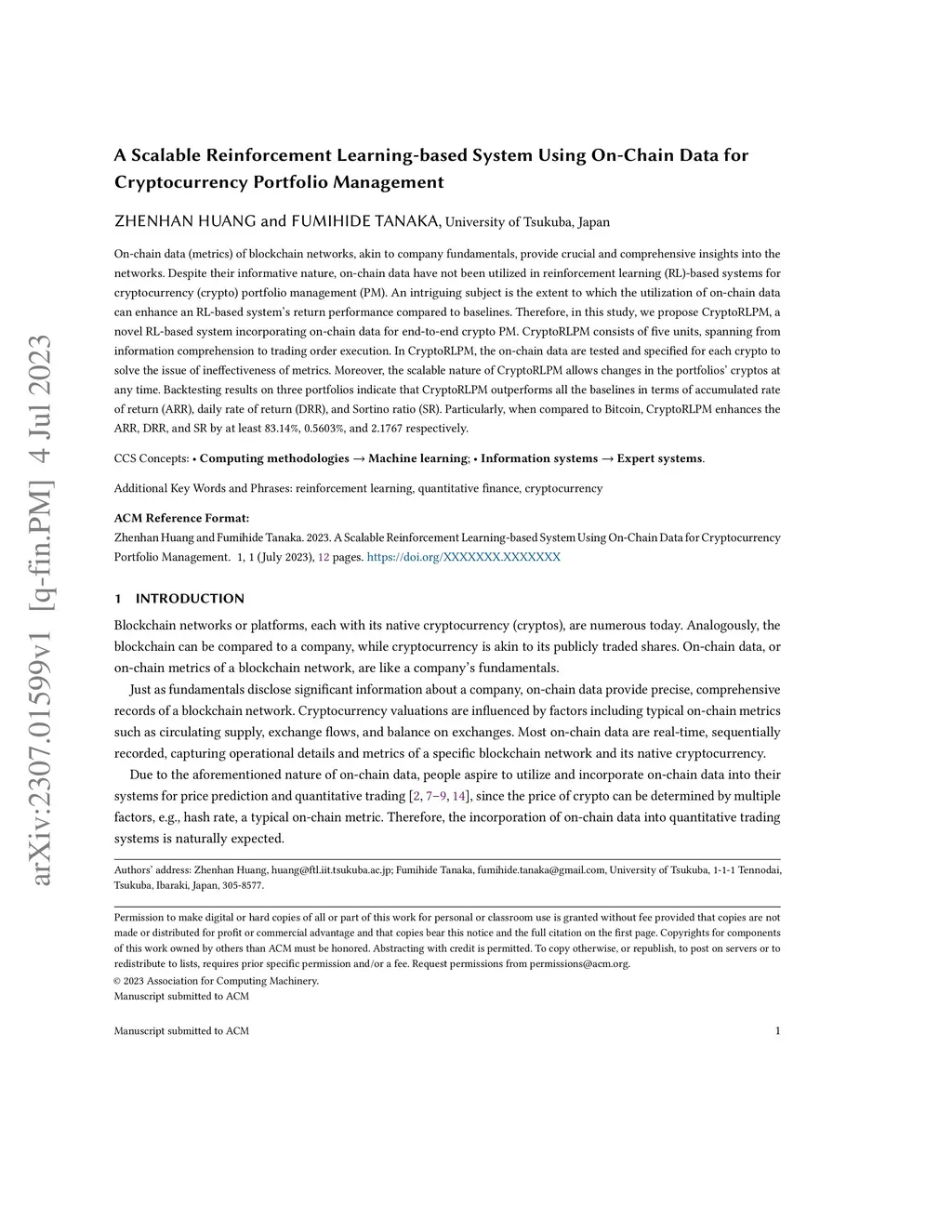 A Scalable Reinforcement Learning-based System Using On-Chain Data for