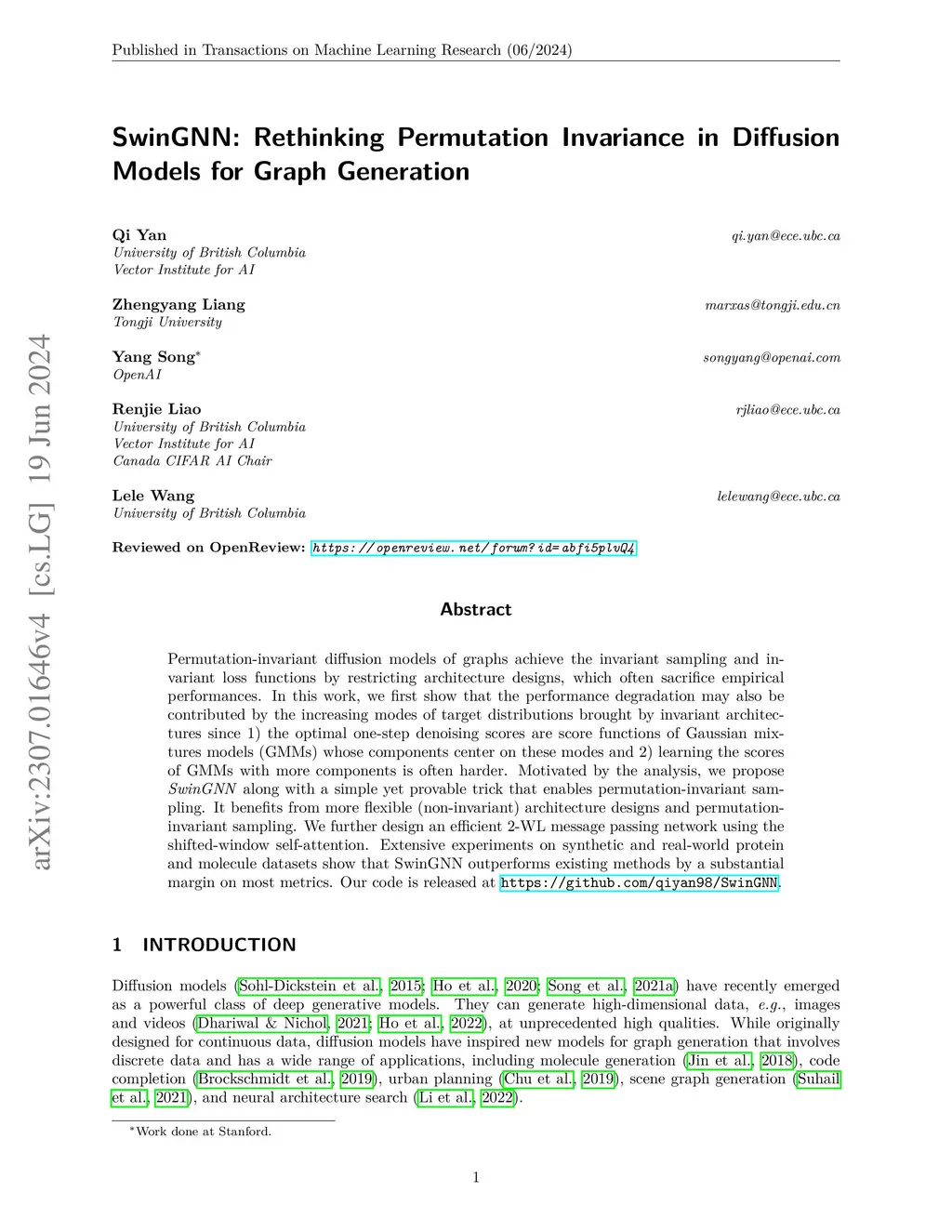 SwinGNN: Rethinking Permutation Invariance in Diffusion Models for Graph