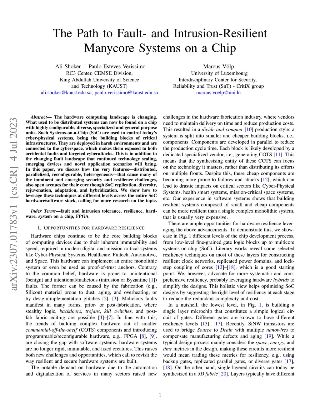 The Path to Fault- and Intrusion-Resilient Manycore Systems on a Chip